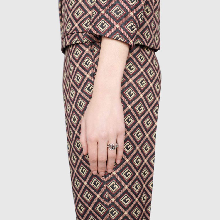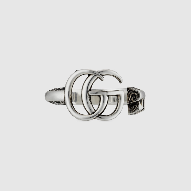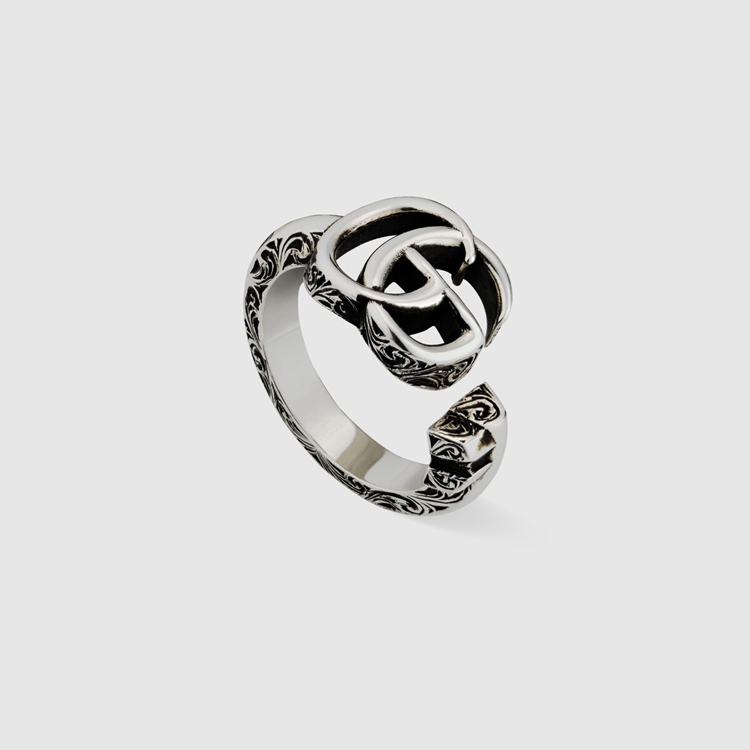 Style 627760 J8400 0701 This sterling silver ring, With an aged finish, features The now recognizable Double G, The symbol sits atop a key which is formed into a ring. Expertly made and intricately designed, often With subtle nods to The House, Gucci’s silver jewelry collection is presented in an array of contemporary and Classic pieces.