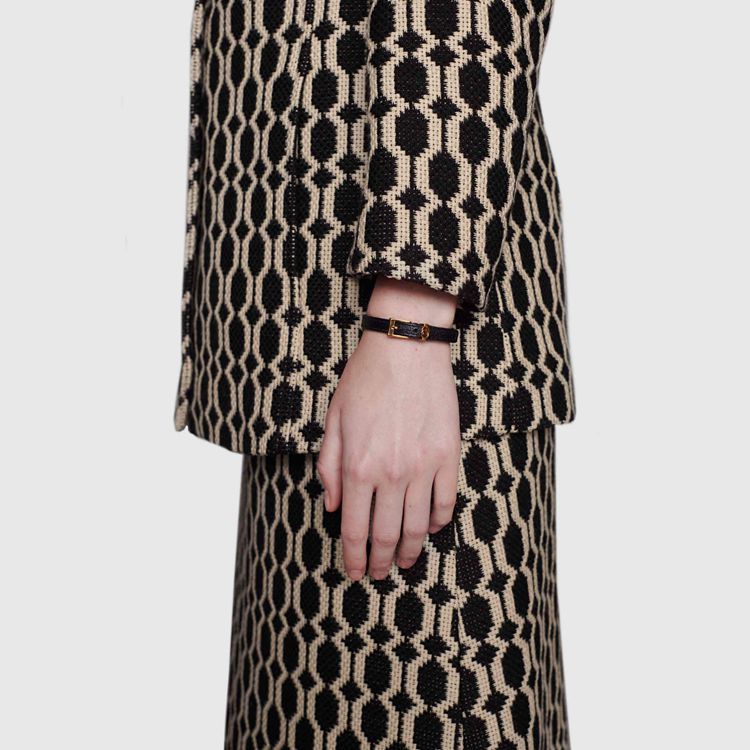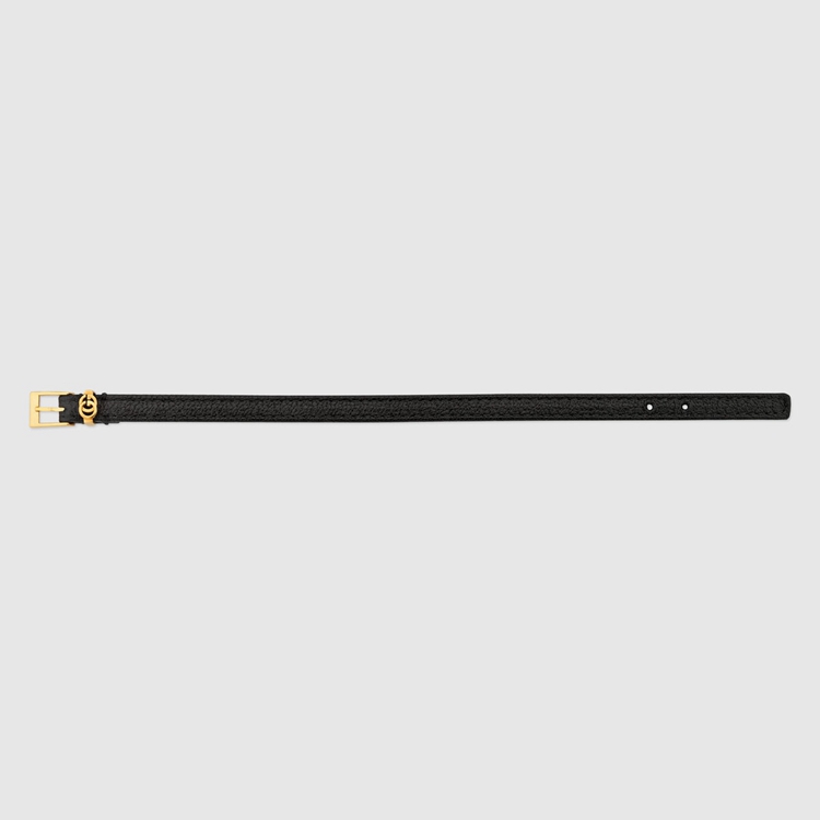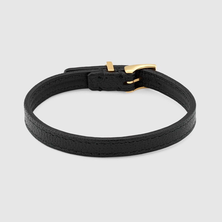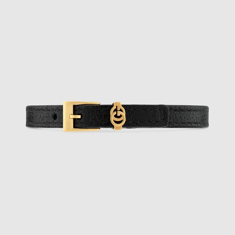 Style 648621 J8802 8030To convey The idea that pieces should be able to be worn always, and not just in fashion For One season, The initials of Guccio Gucci subtly define This black leather bracelet.
