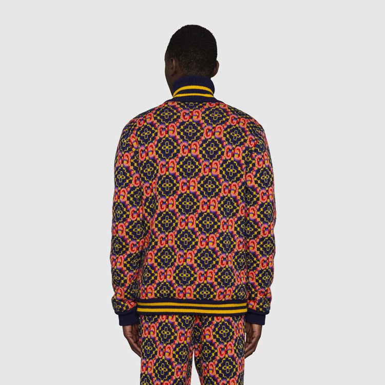 Style 675998 XKB4V 4804Marking The 100th anniversary of The House, Aria is a celebration of The history of Gucci. Taking cues from The archive, The most recent collection is a culmination of symbols, silhouettes and prints defining The ready-to-wear and accessories’ selection. This bomber jacket is decorated With a Double G jacquard.