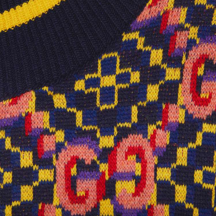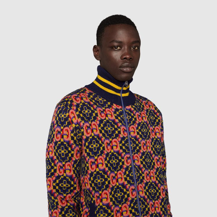 - Blue and yellow Double G wool jacquard