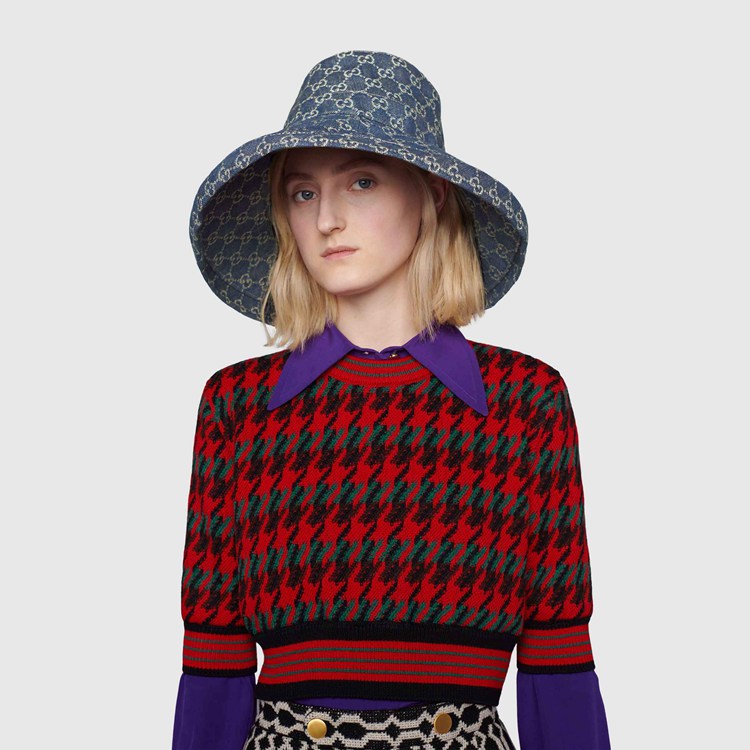 Style 631958 3HAAH 4900 A wide brim hat Crafted With organic GG denim specifically washed For a vintage effect. Gucci explores New takes on The cult fabric, reinterpreting it With different Designs and washing techniques that blur The line between vintage and contemporary.