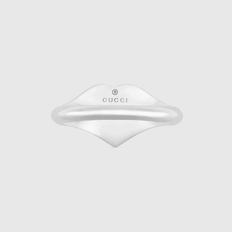 Style 645544 J8410 8133Here, The desire For experimentation outside The Typical limitations of fashion is etched into The base of a stenciled Interlocking G heart ring presented With red enamel. These transparency of These intricate details serve Gucci’s mission to show The world behind its visionary creations.