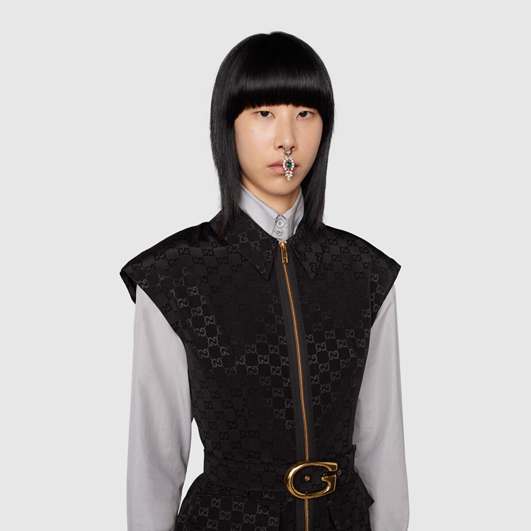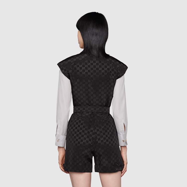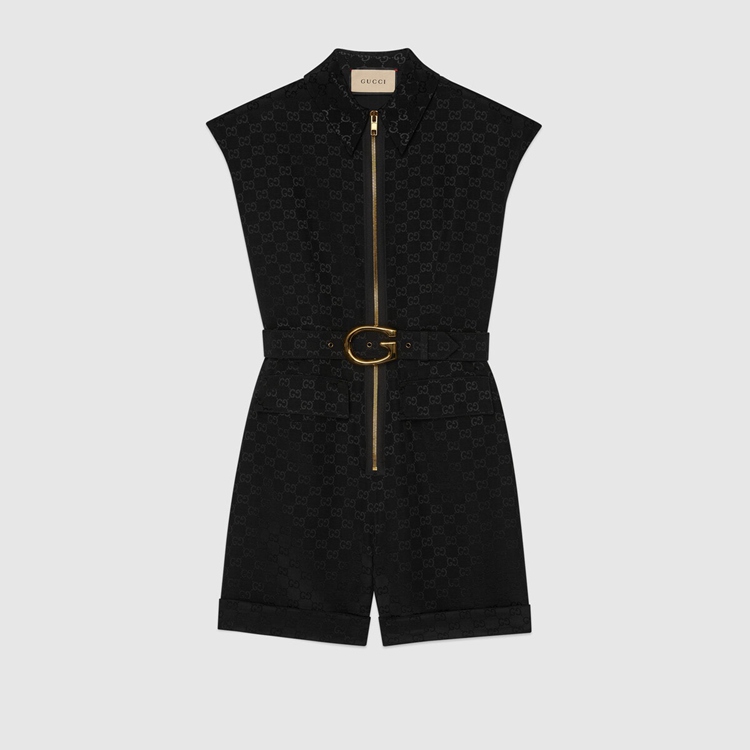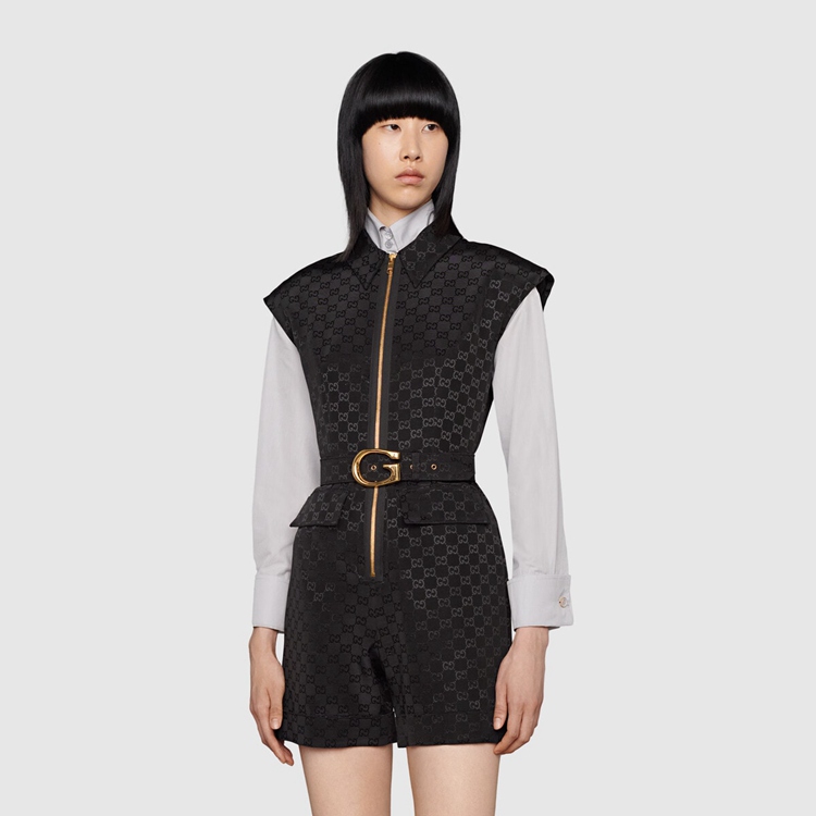 Style 674467 Z8AUI 1000Different iterations of The logo appear each collections celebrating The heritage of The House. For This faille jumpsuit, a G buckle belt on The The waist recall The initials of The Founder Guccio Gucci, paying homage to The origins of Gucci.