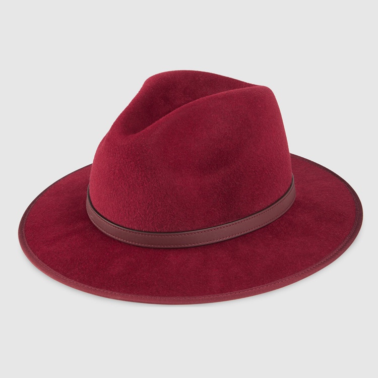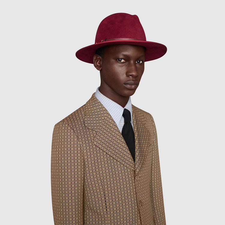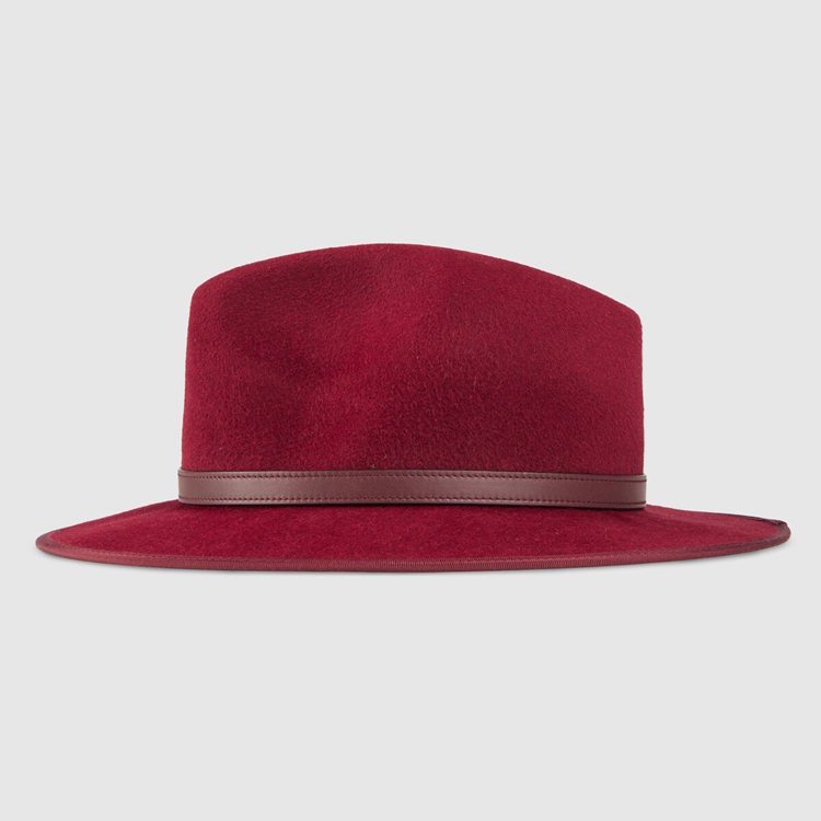 Style 643318 4HABK 6173Unexpected details redefine accessories in a celebration of uniqueness. This felt hat is defined by a leather belt.