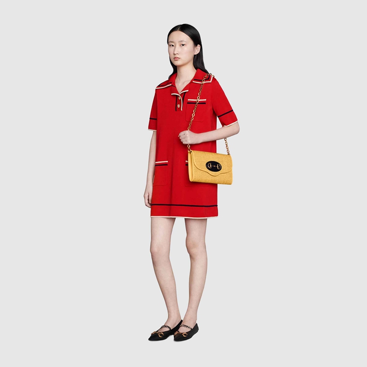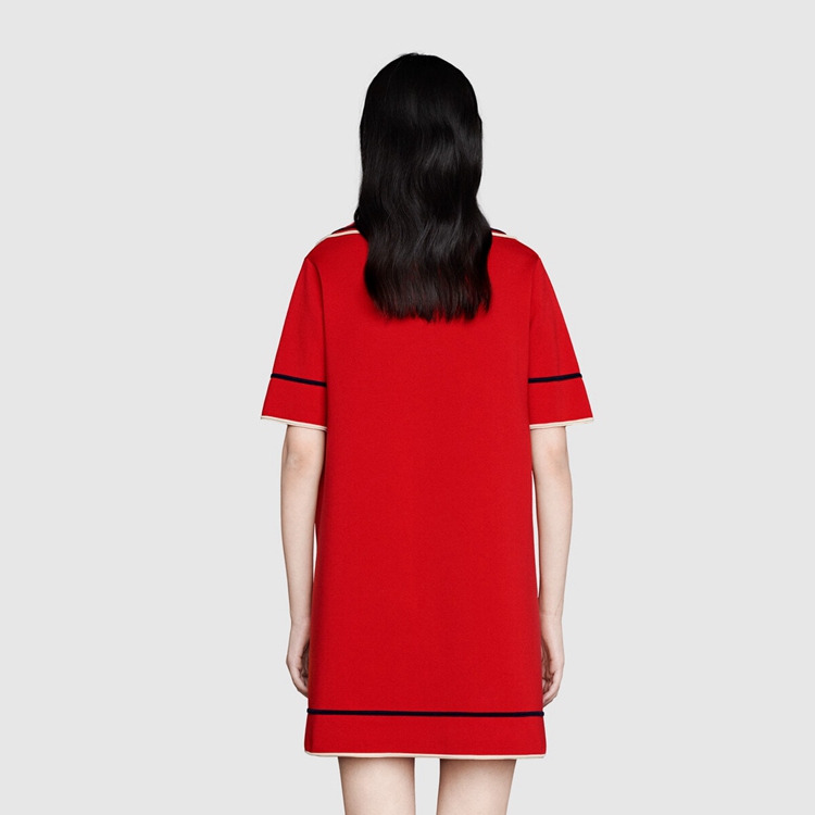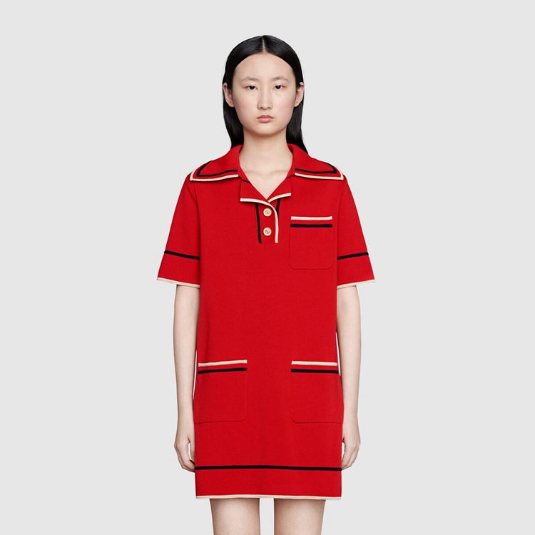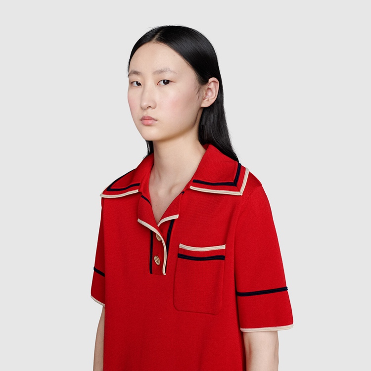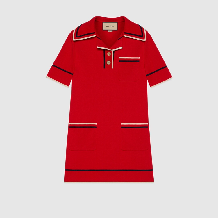 Style 661678 XKBSK 6117Ouverture is a celebration of beautiful pieces and accessories that can be worn over and over again. Styles presented throughout The collection embrace imaginative stories born from This experimentation, often expressing influences of The past. Classic preppy styles continue to be a window to innovative perspective, like This polo dress defined by ivory and blue contrasting trims.