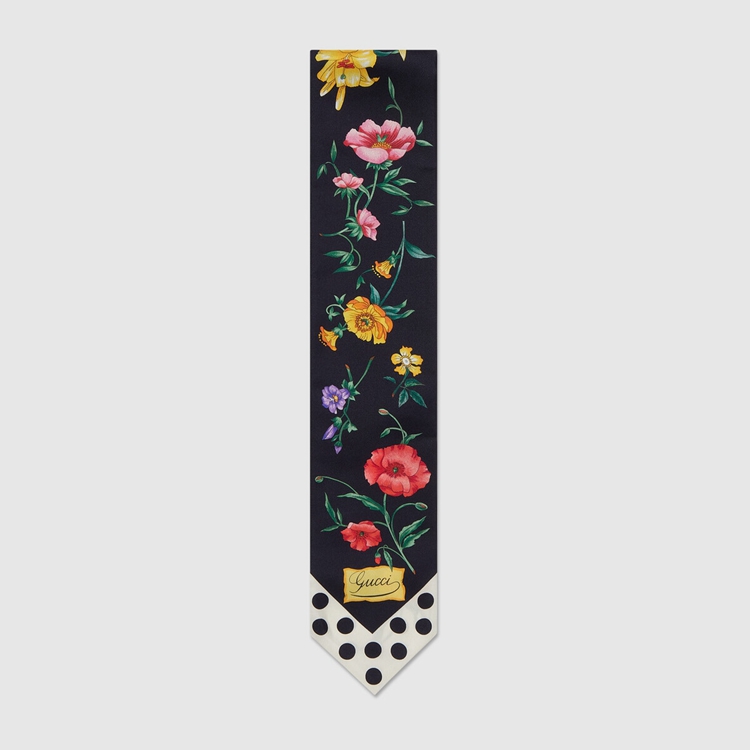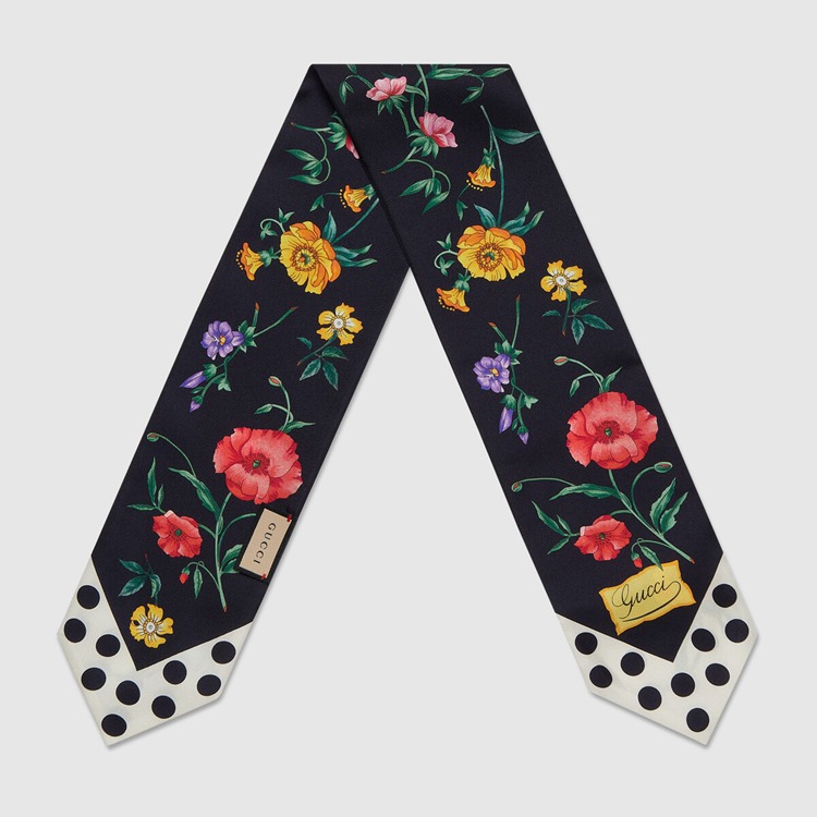 Style 682016 3G001 4078Conveying The House’s fascination With nature, motifs that celebrate The beauty of The botanical world appear throughout The Gucci Aria collection. Here, This dark blue silk twill neck bow presents a playful take on The theme by mixing delicate flowers With a polka dot motif. Pieces With versatile ways to wear and style embrace each person who is Part of The House’s individual spirit