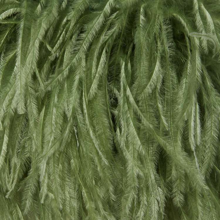 - Green feather appliqué on The sleeves