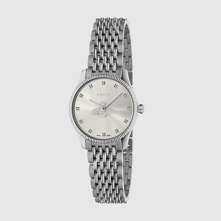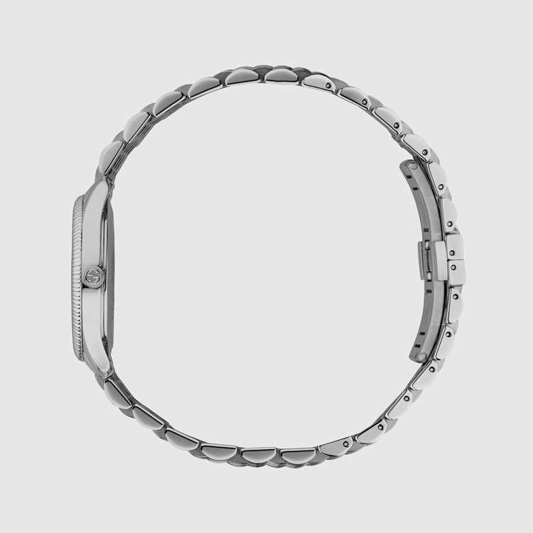 Style 632115 I1600 1402 Part of The G-Timeless collection, This Classic watch in steel is Crafted With a traditional sensibility, juxtaposed With a sunbrushed dial. The bee motif is specially designed to work as The seconds hand.