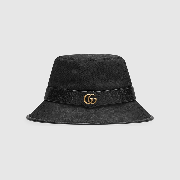 Style 576587 4HG53 1060Presented in tonal monogram canvas, The shape of This bucket hat is accentuated by textured leather trims. The style is finished With The Double G—an archival reprisal of The House’s signature emblem.