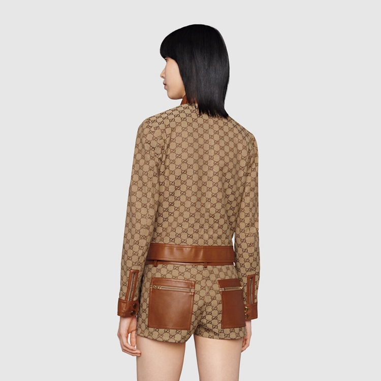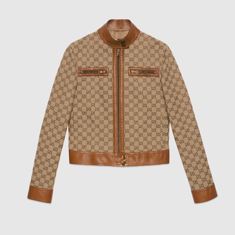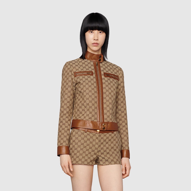 Style 681034 Z8AV6 2184 The GG motif is a subtle nod to The theme of reinvention that appears throughout The House’s narrative. First used in The ’70s, The monogram is an evolution of The Gucci Rhombi design—a pattern from The ’30s archives. A Part of The Aria collection, it appears atop This jacket With leather trims.