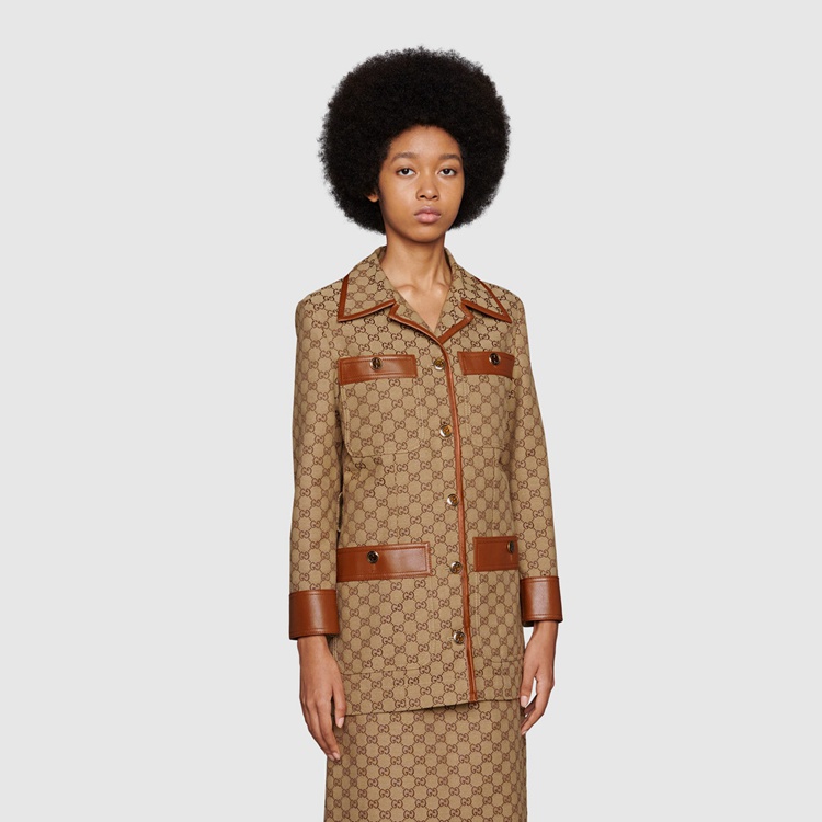 Style 682302 Z8AWR 2184 Instantly recognizable emblems of The brand, logos enrich Designs in New and unexpected ways. Behind every logo lies The tradition and value of The House, an everlasting medium One can wear again and again. Exploring The archives, The GG monogram and The Web come together For This jacket in a tribute to both The past and present of The House.