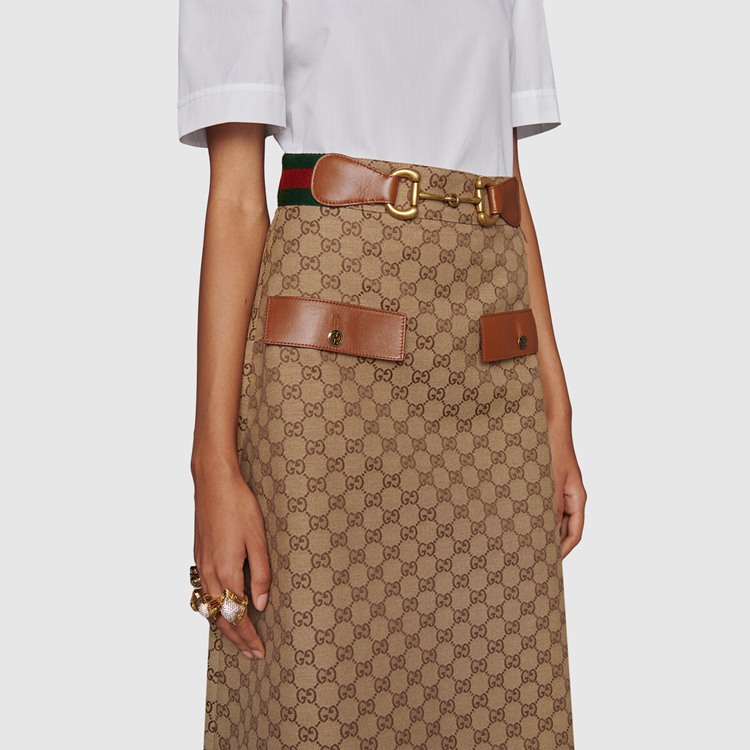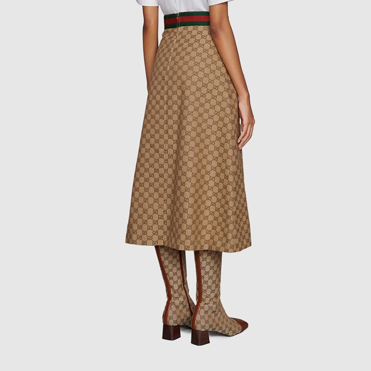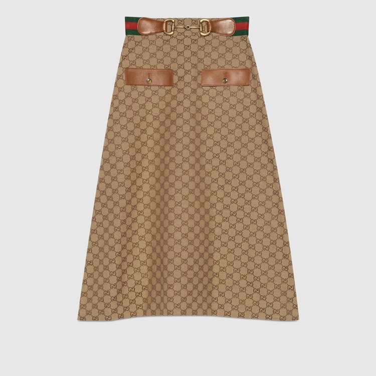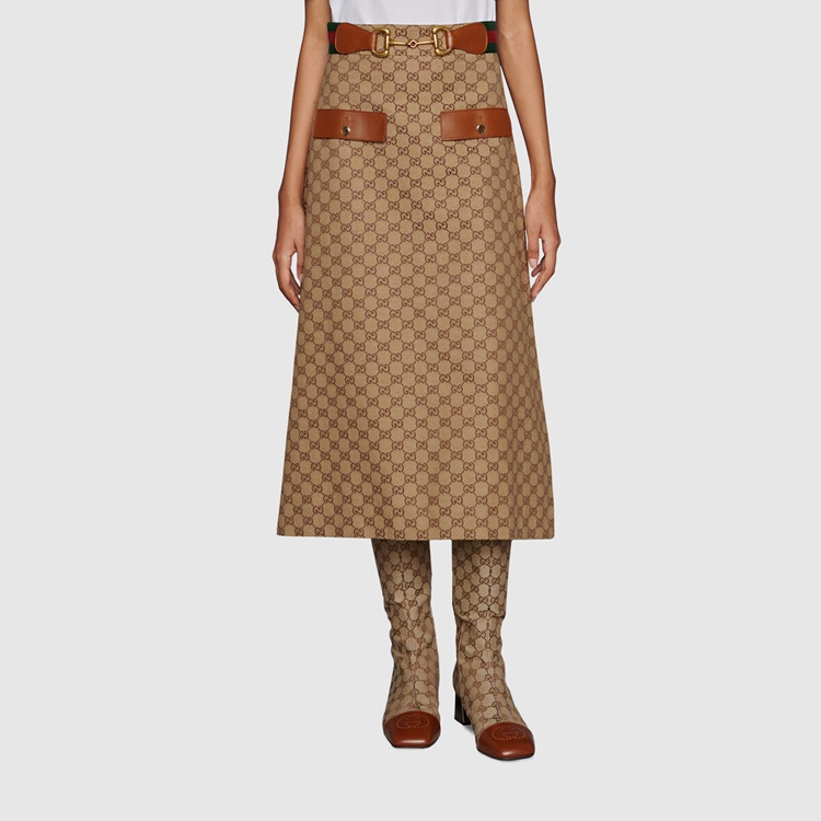 Style 681567 Z8AWI 2184 A mid-length skirt, Crafted from GG canvas featuring brown leather trims. First used in The 1970s, The GG logo was an evolution of The original Gucci rhombi design from The 1930s, and from then it’s been an established symbol of The House’s heritage.