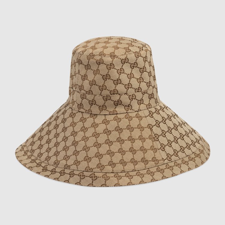 Style 631958 KQW00 9700 A wide brim hat defined by The House’s monogram. Paying homage to The Founder of The brand, Guccio Gucci, The accessory is Crafted from GG original and further enriched by a miniature version of The Double G.