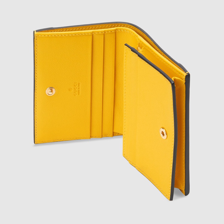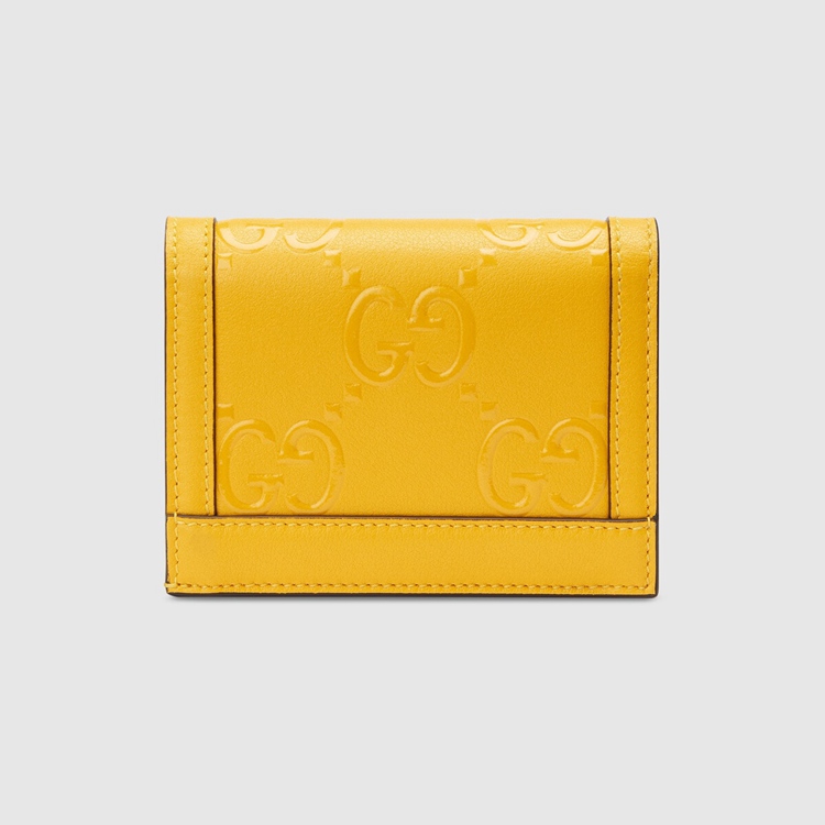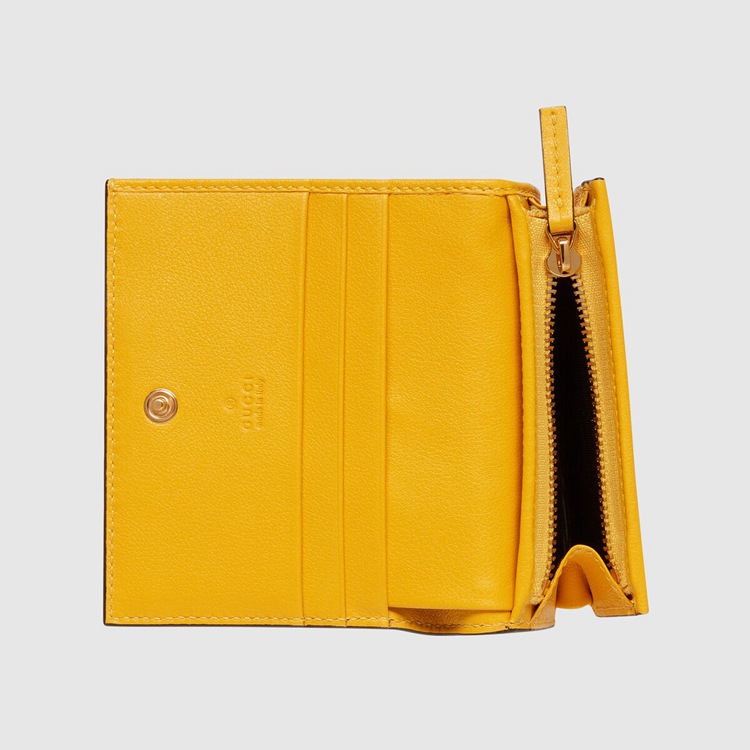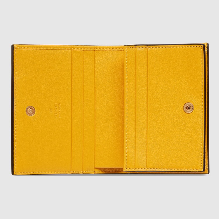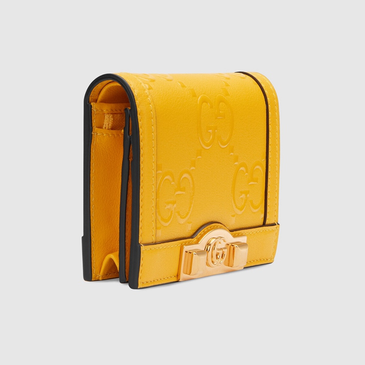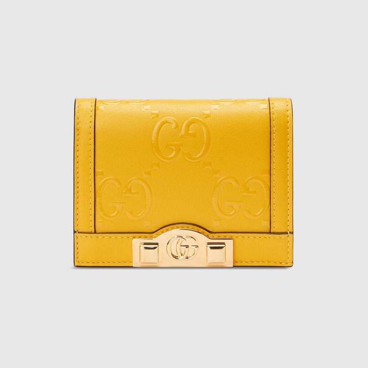 Style 676150 UF4AG 7223Contemporary House codes from The last six years are paired With modern design details. Here The Emblematic GG motif is paired With studs For a contemporary feel while an embossed motif defines This yellow leather card case wallet.