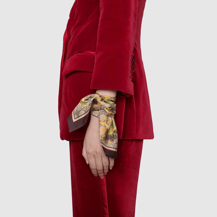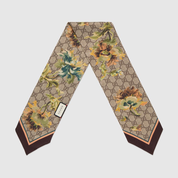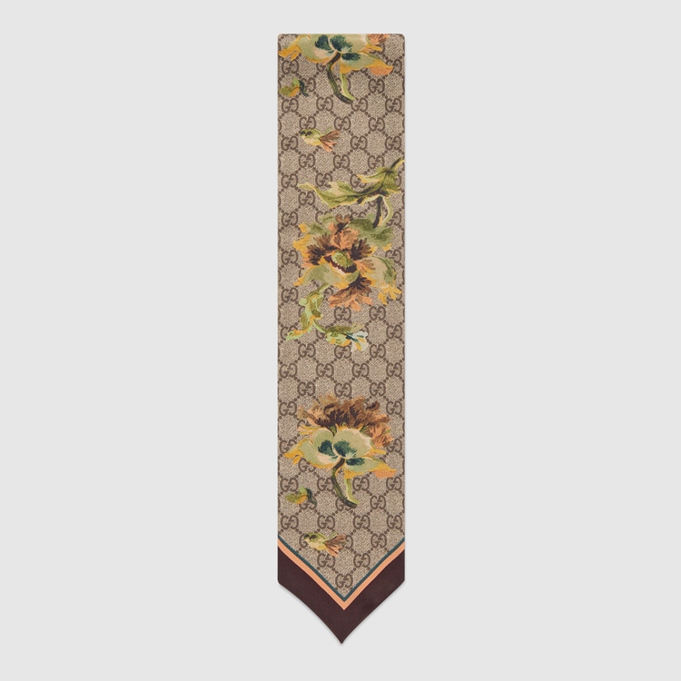 Style 681410 3G001 9764 Crafted from soft silk twill, This neck bow is animated by The GG carnation print in neutral tones of beige and brown. Pieces With versatile ways to wear and style embrace each person who is Part of The House’s individual spirit