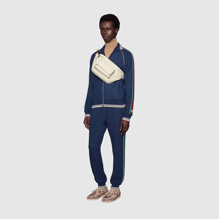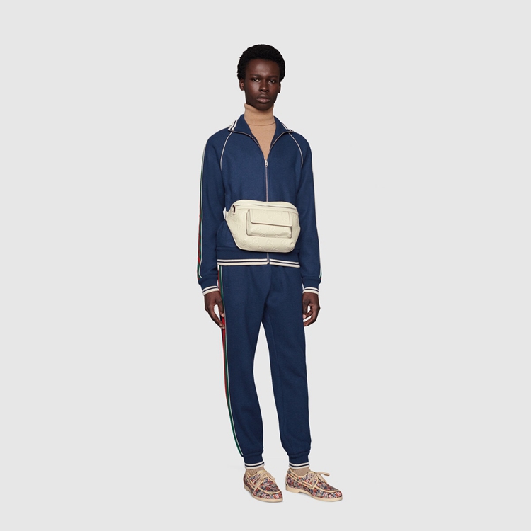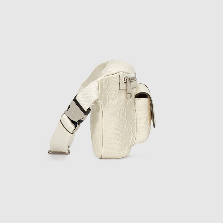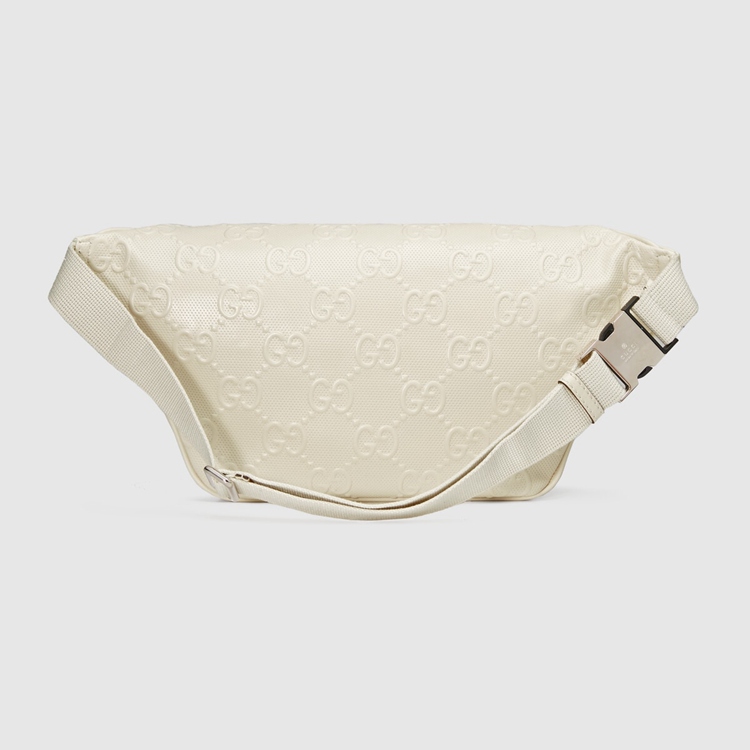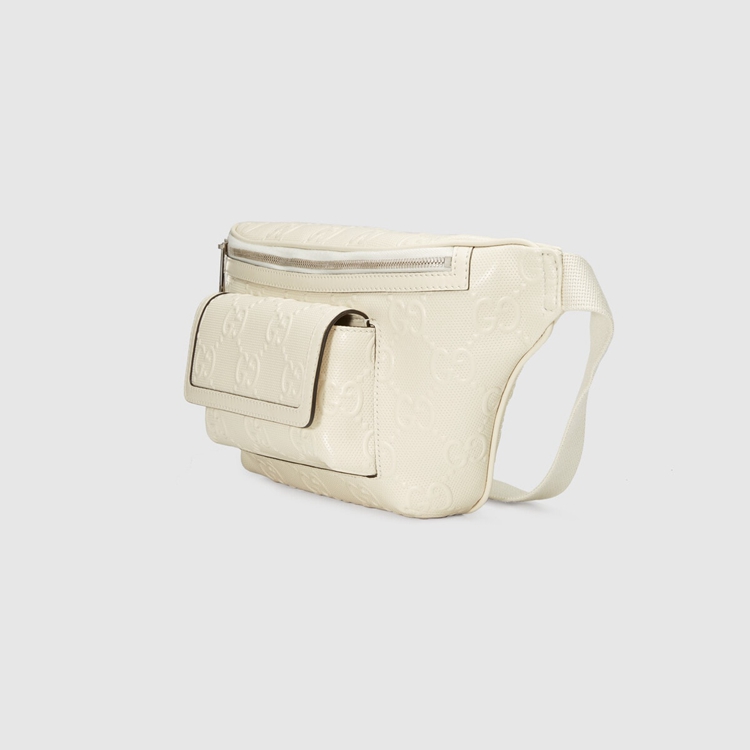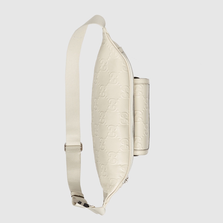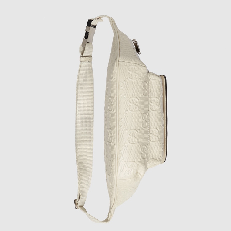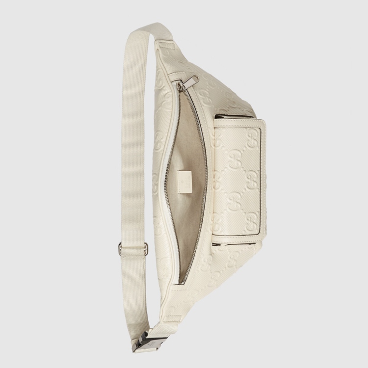 Style 645093 1W3CN 9022Connecting The House’s past and present, archival codes appear in New ways With a contemporary twist. Playing With textures and materials The Guccio Gucci’s monogram appears an embossed detail against a white leather base. Belt bags continue to be a signature Gucci accessory.