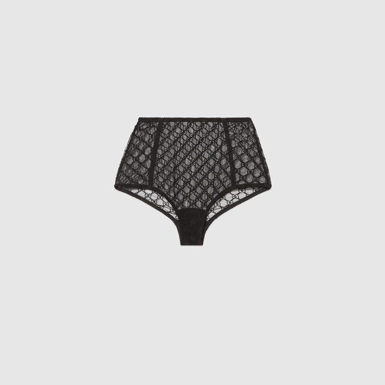 Style 661058 XUACO 1000 Crafted from black embroidered GG tulle, These briefs embody what The Creative Director described as a “beautiful cliché of sexiness,” a concept explored throughout The latest collections With hints to The idea of freedom that fashion experienced in The ’90s.