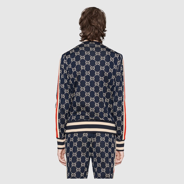 Style 496919 X9V05 4245First used in The 1970s, The GG logo was an evolution of The original Gucci rhombi design from The 1930s, and from then it’s been an established symbol of Gucci’s heritage. In a shape that is infused With a Retro feel, The tracksuit jacket reaches past its athletic origin to a street style that is rooted in The now.