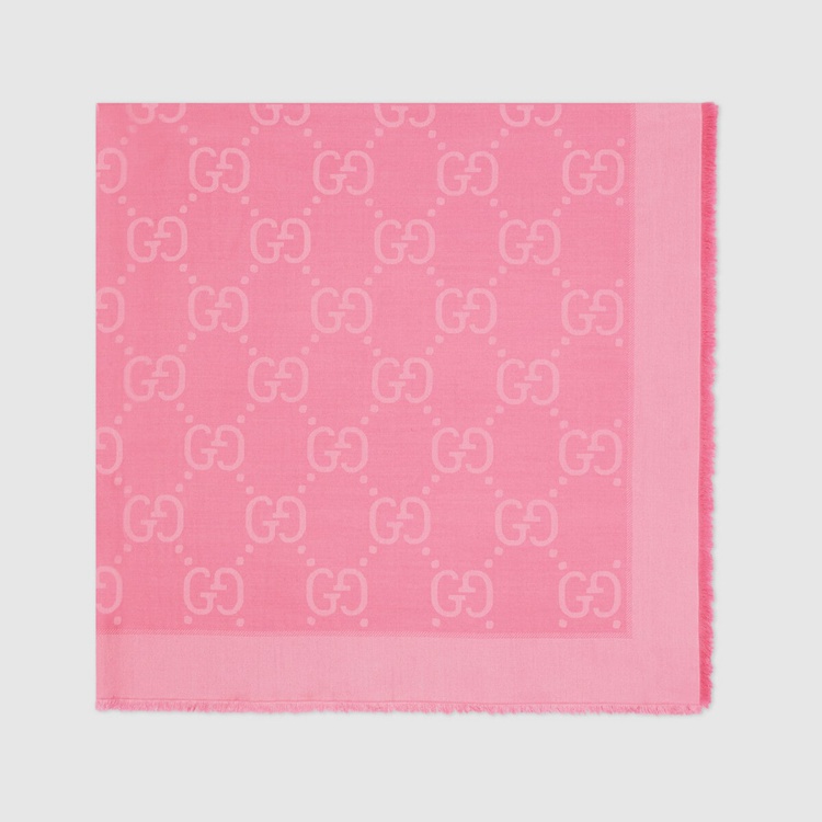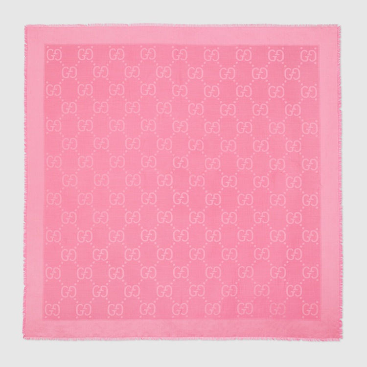 Style 663671 3GC43 5800 Crafted from a silk wool blend, This pink jacquard shawl features The House’s Emblematic GG pattern, first introduced in The ’70s. As an renowned symbol of Gucci’s heritage, The GG logo is continually reimagined and reintroduced through a contemporary lens.