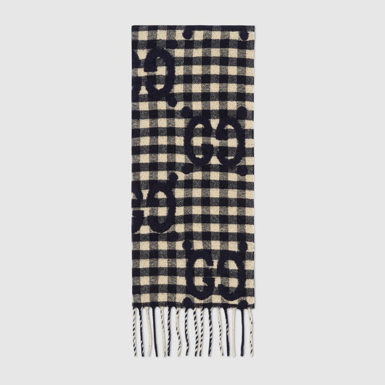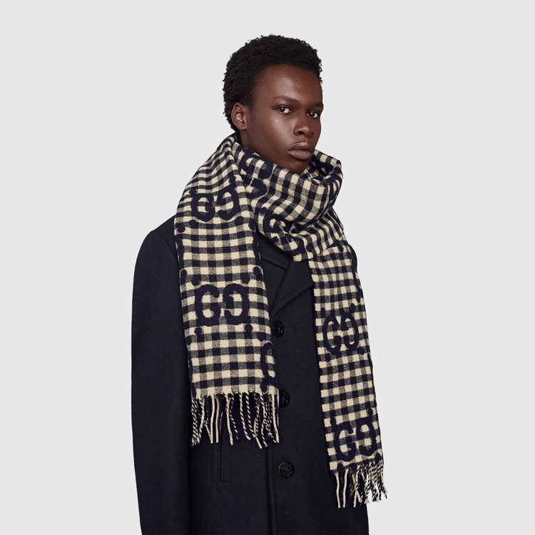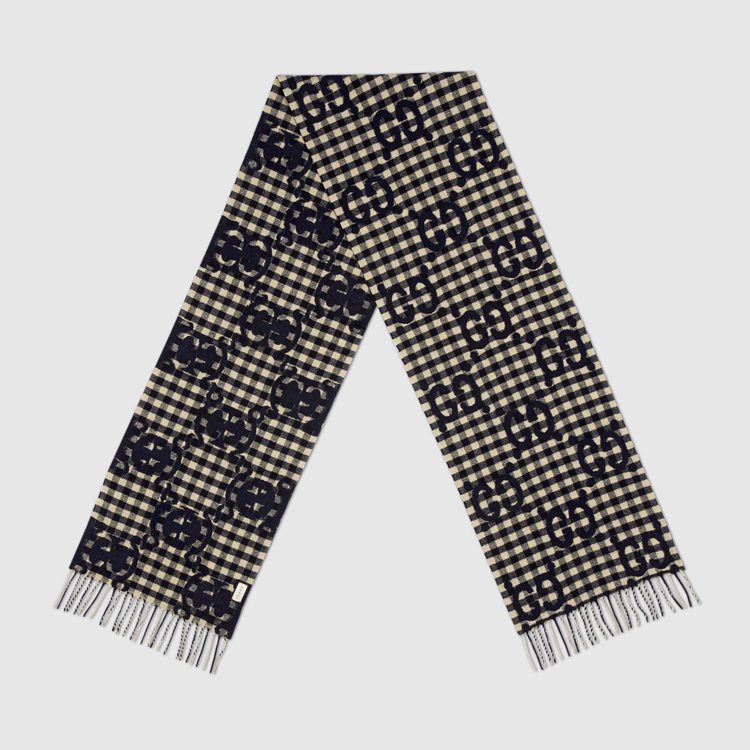 Style 644365 4G718 4178 Crafted from wool jacquard in contrasting colors, This reversible scarf is defined by The House’s monogram. First used in The 1970s, The GG logo was an evolution of The original Gucci rhombi design from The 1930s, and from then it’s been an established symbol of Gucci’s heritage.