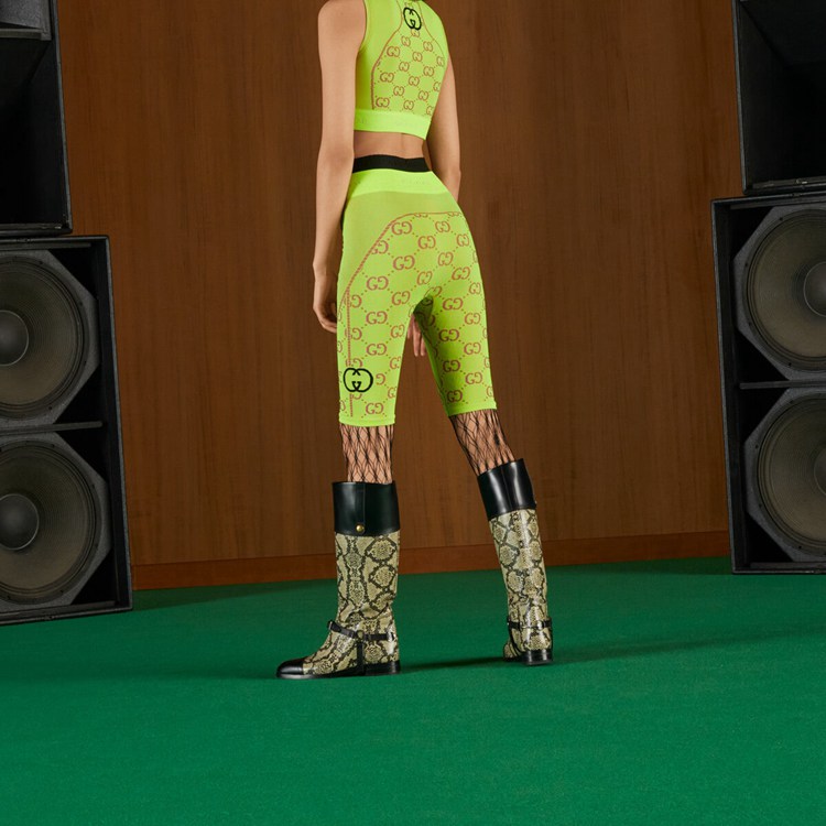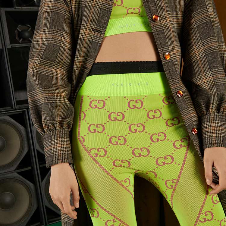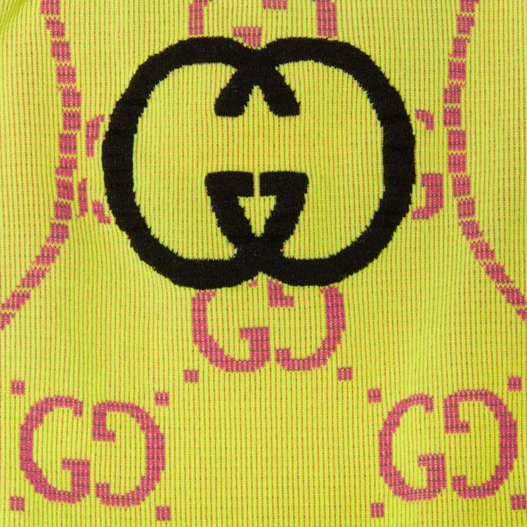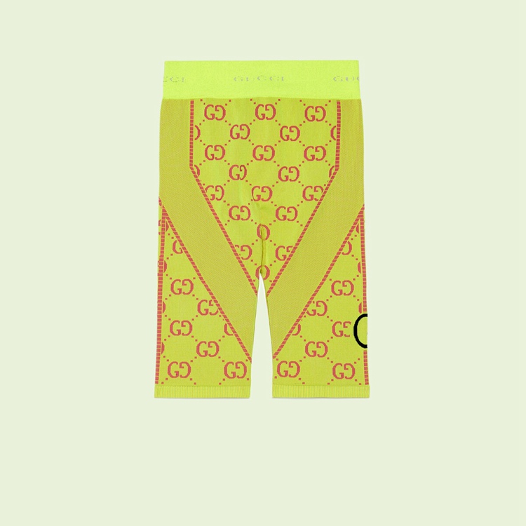 Style 693289 XJEFZ 7388 With Gucci Love Parade, The Creative Director rewrites The rules of on-the-go fashion. Activewear- Inspired pieces animate The collection through a series of neon hues and New colorful versions of The heritage GG logo. Here, a pair of biker shorts is Crafted from fluorescent yellow and pink GG jersey jacquard.