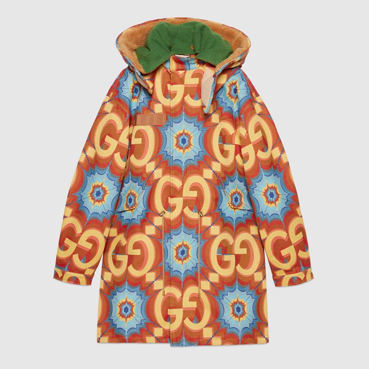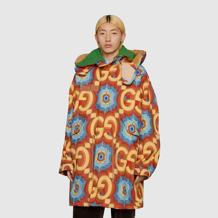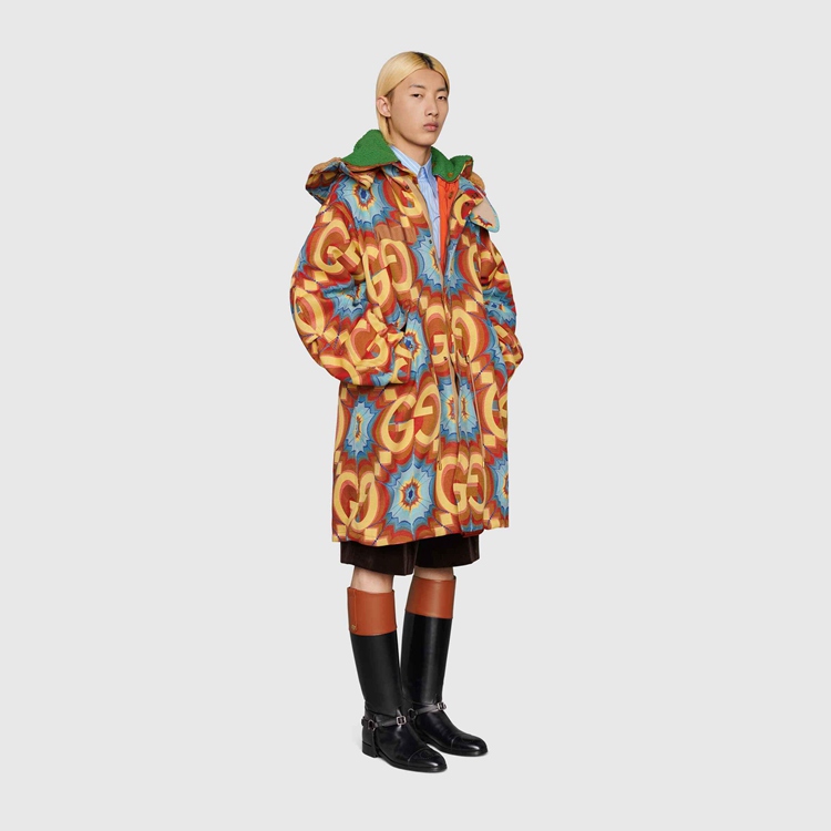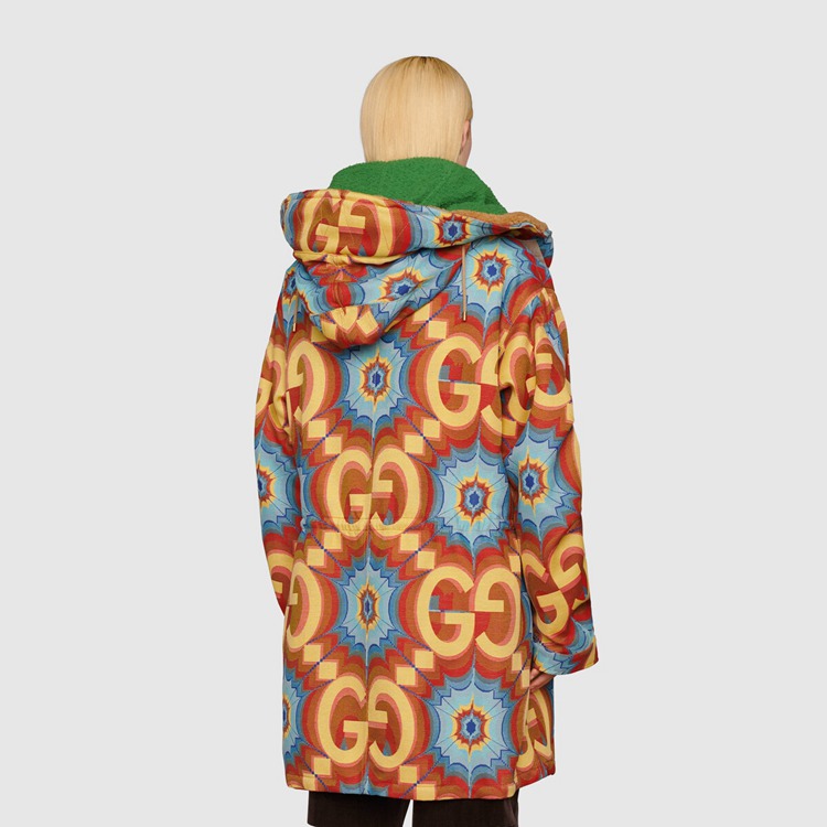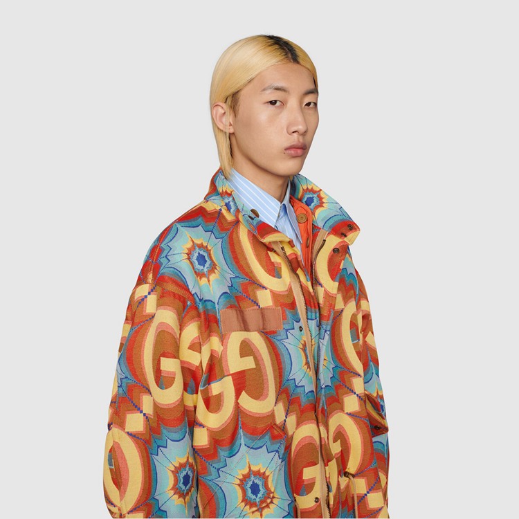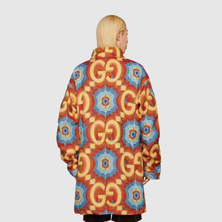 Style 676148 XDBUJ 7187 Gucci Aria unveiled a psychedelic interpretation of The GG pattern, GG kaleidoscope, Inspired by The art movement from The 1960s and 1970s. The New pattern decorates streetwear- Inspired looks and is unexpectedly complemented by equestrian- Inspired elements.