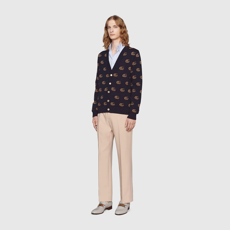 Style 660285 XKB3T 4037 Part of The House’s codes first presented during The ‘30s, The distinctive GG motif has been The inspiration For New explorations of expression For almost a century. In a New interpretation, The GG is presented as a jacquard on This cashmere V-neck cardigan.