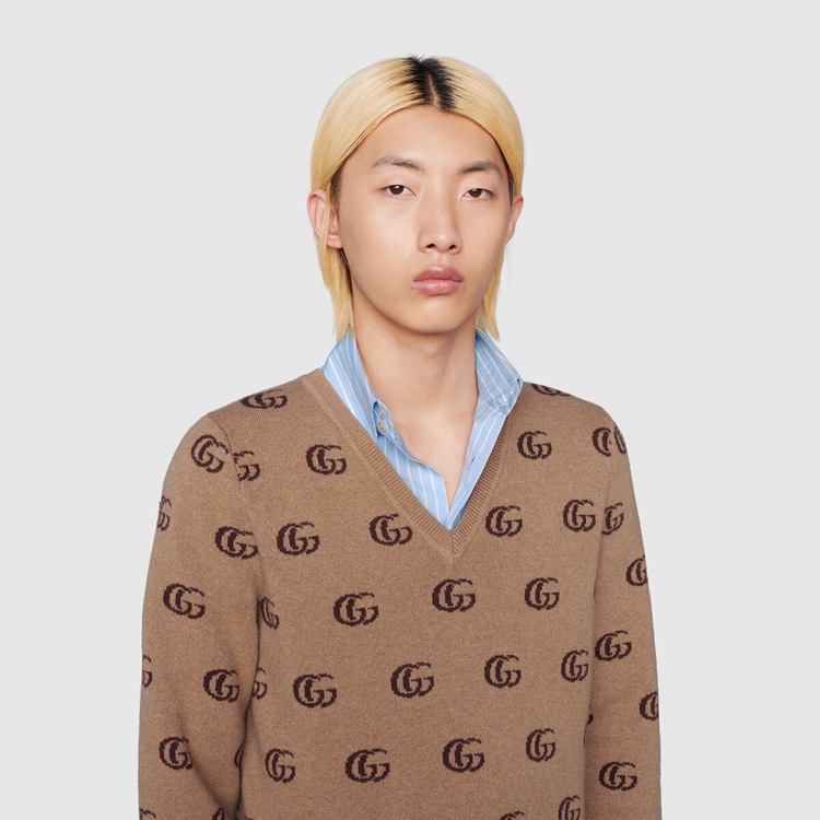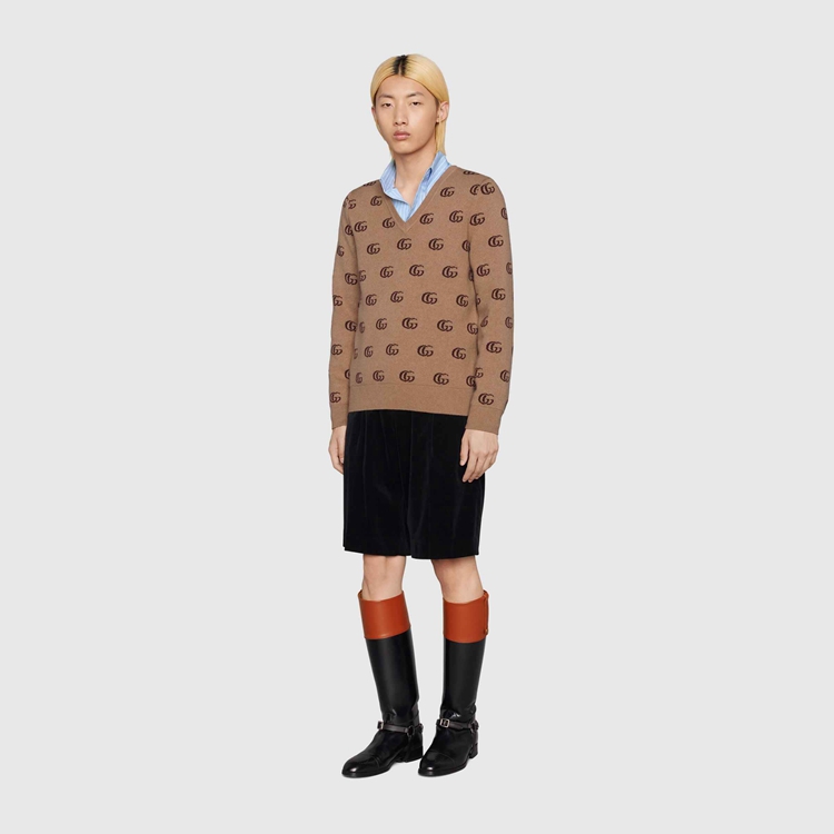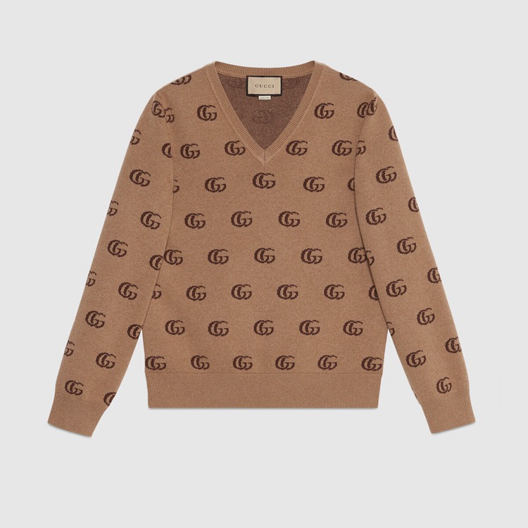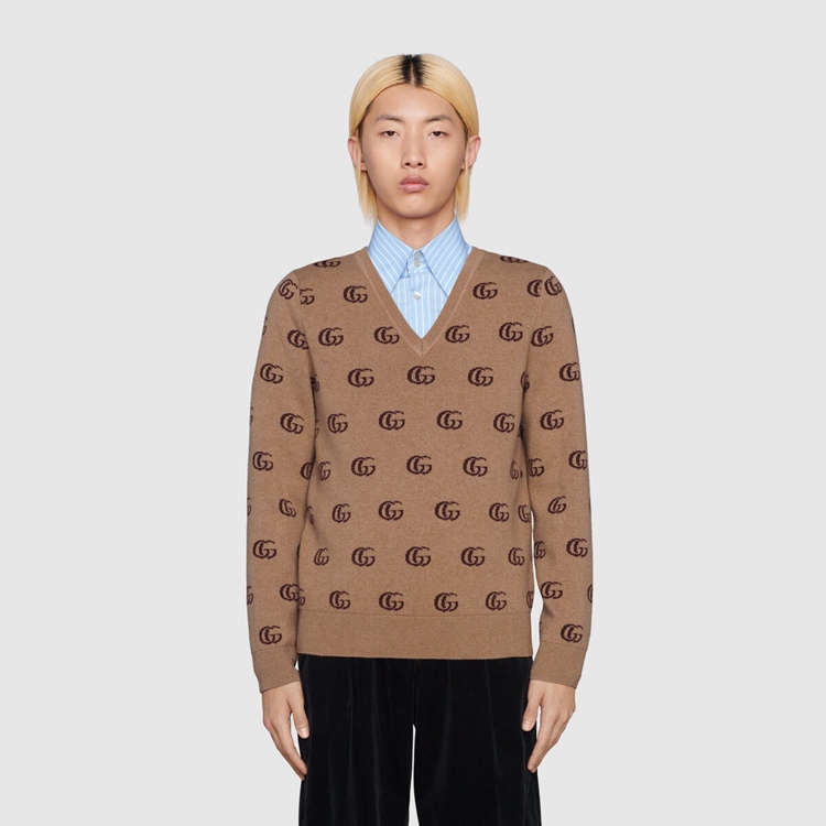 Style 655104 XKB3T 2668 Part of The House’s codes first presented during The ‘30s, The distinctive GG motif has been The inspiration For New explorations of expression For almost a century. In a New interpretation, The GG is presented as a jacquard on This cashmere V-neck sweater.