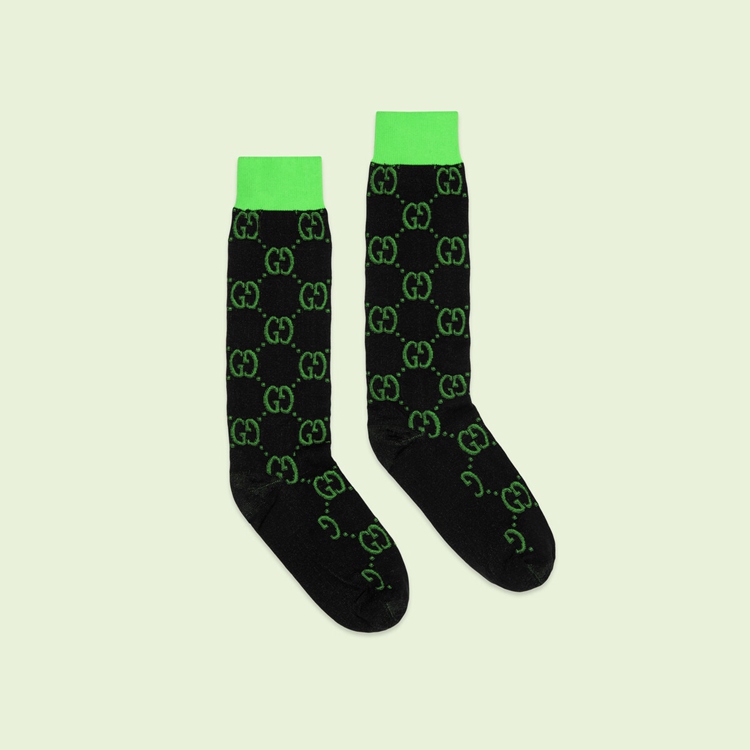 Style 700626 4G355 1067 The GG logo is an established symbol of Gucci’s heritage, evolving from The original rhombi design first used in The ’30s. Here The unmissable motif decorates This pair of technical knit socks in an alternating Color palette.
