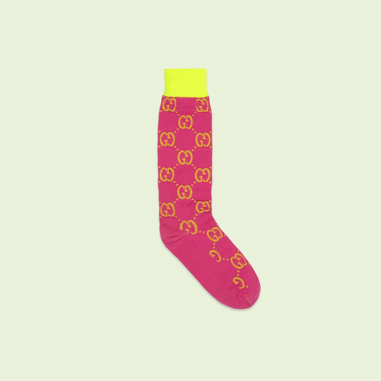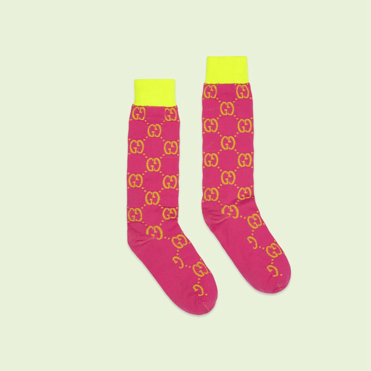 Style 700626 4G355 5575 The GG logo is an established symbol of Gucci’s heritage, evolving from The original rhombi design first used in The ’30s. Here The unmissable motif decorates This pair of technical knit socks in an alternating Color palette.