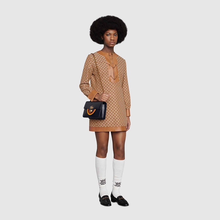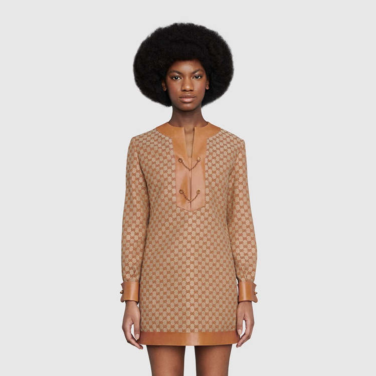 Style 655427 Z8AOA 2254Refined yet contemporary, This kaftan made from GG linen canvas mixes Emblematic House’s symbols.