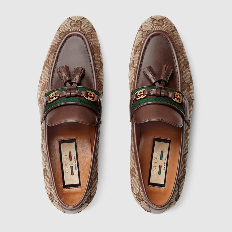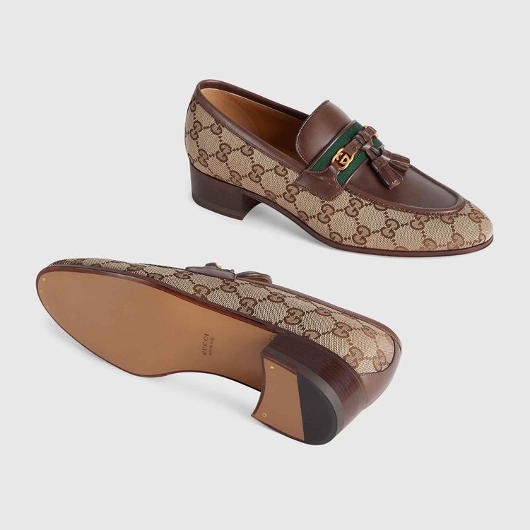 Style 675651 2HKJ0 9785 One of Gucci’s most Emblematic designs, The loafer continues to be reimagined each season as an homage to The House’s origins. Here, The Classic design pairs monogram details With The green and red Web as a celebration of different chapters of The brand’s history.