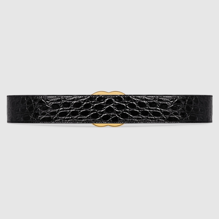 Style 406831 E7I0G 1000 The Emblematic Double G is reintroduced For Spring Summer 2020 in a luminous gold-tone, set on a men’s black crocodile leather belt.