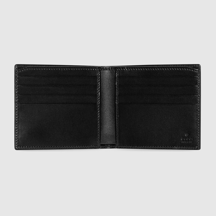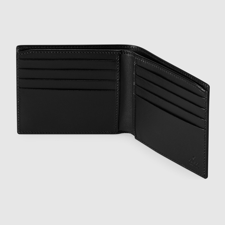 Style 428726 0YK0N 1000Details from The House’s archives add a vintage feel throughout The Ouverture collection. Here, This bi-fold wallet is presented in smooth black leather and animated by a mini version of The line’s signature Double G hardware—a symbol made popular in The ’70s.