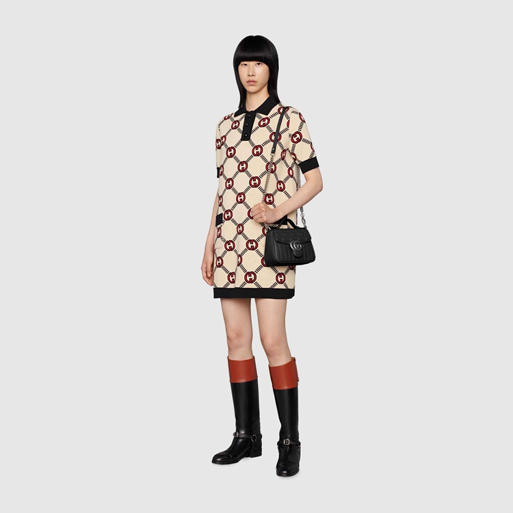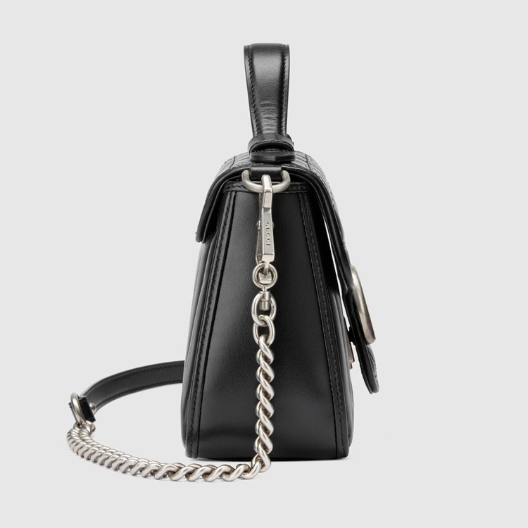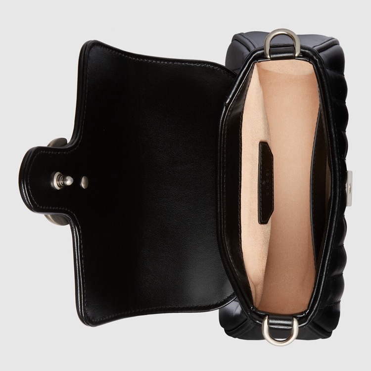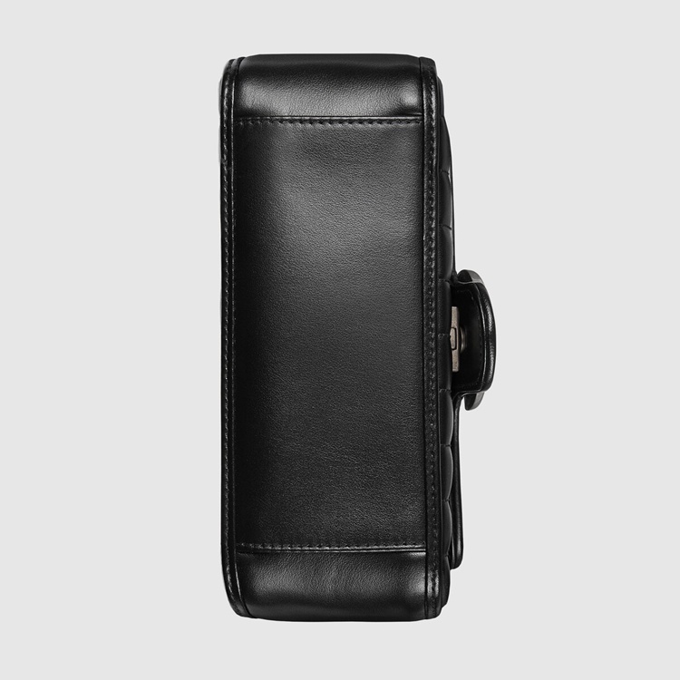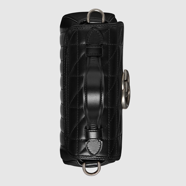 Style 583571 UM8AN 1000 A member of The House’s Beloved lines, The GG Marmont is characterized by The brand’s Emblematic monogram hardware and matelassé leather. For The Gucci Aria collection, The style is reimagined With a New geometric approach to The signature material while its Double G hardware is presented With an antique silver-toned finish. The design appears here in The shape of a mini bag in black.