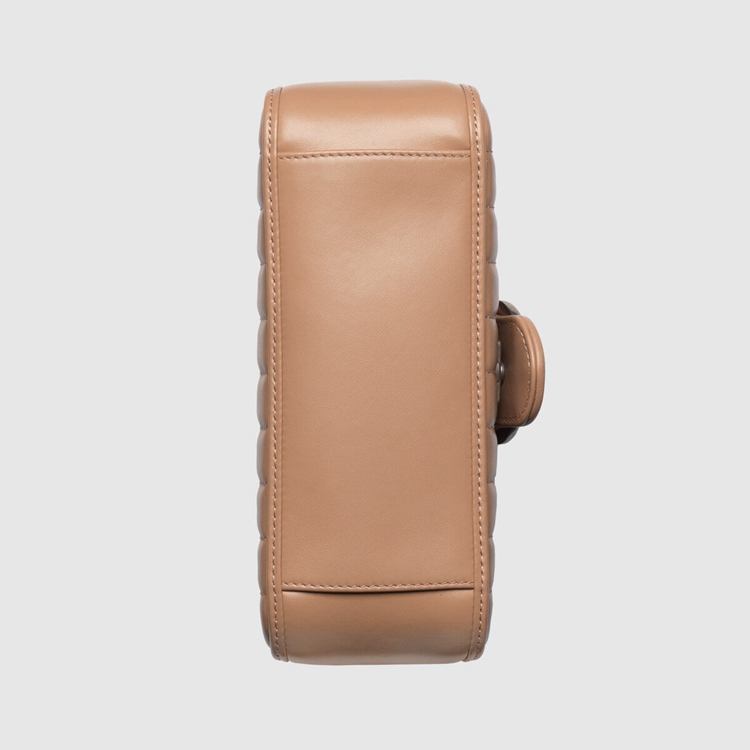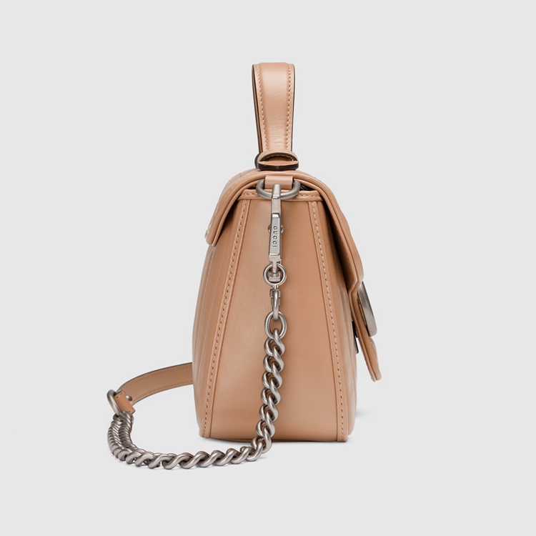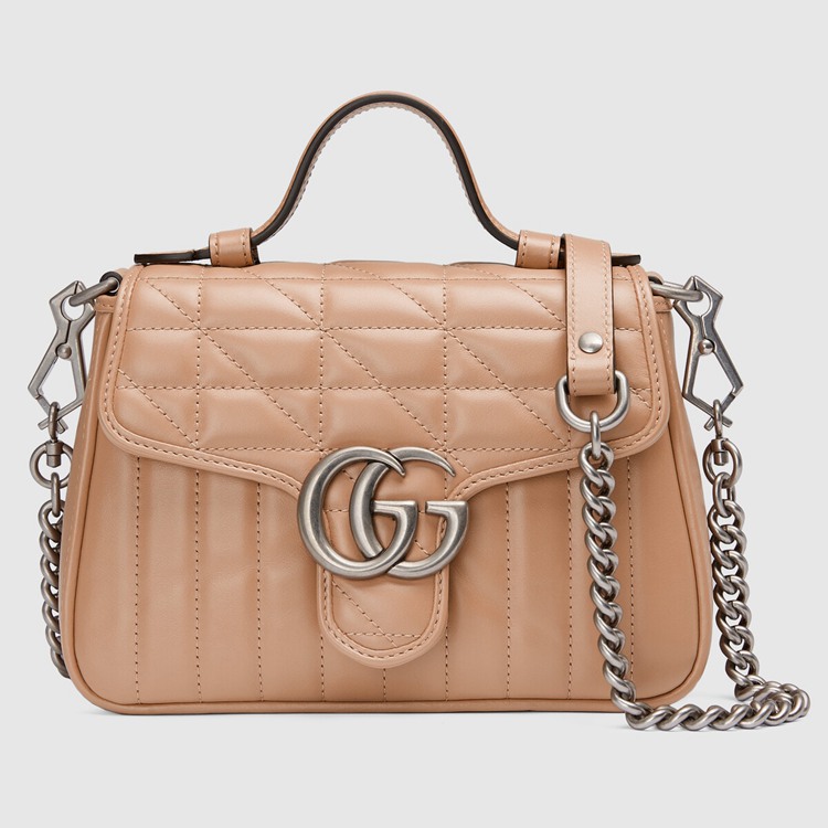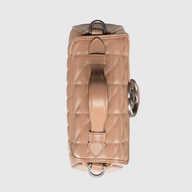 Style 583571 UM8AN 2754 Gucci Aria explores The House’s archives, telling Gucci’s story though a mix of archival and contemporary elements. The GG Marmont was introduced in One of The Creative Director’s first fashion shows and each season its design evolves through The lens of The latest collection. Here, The mini bag is presented in rose beige matelassé leather With antique silver-toned hardware.