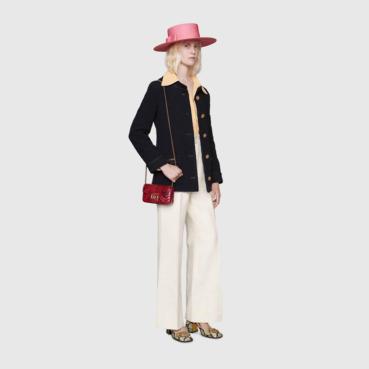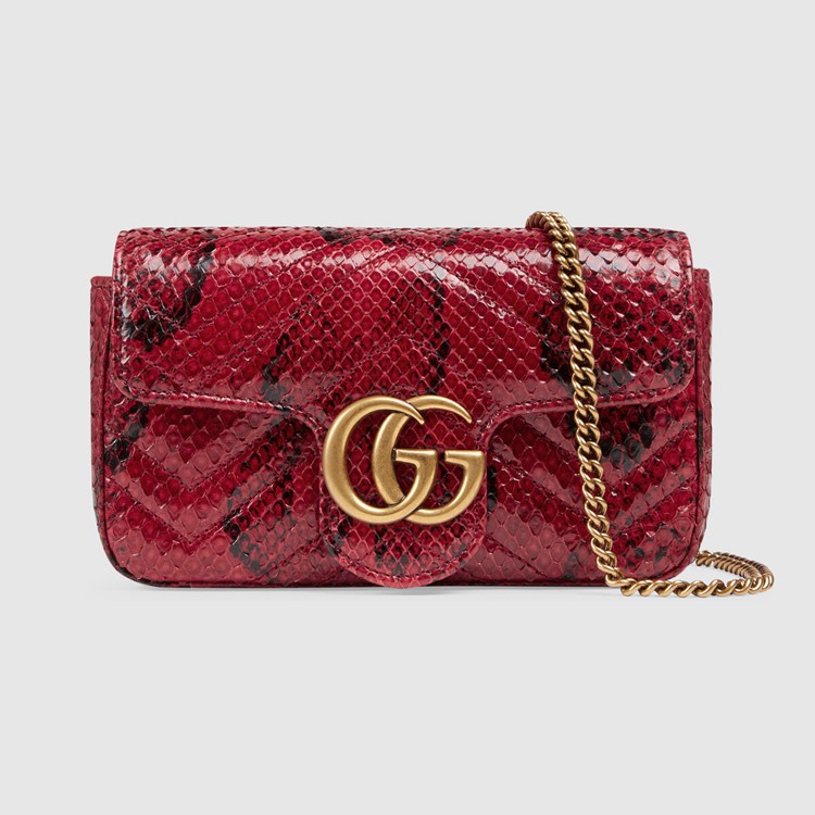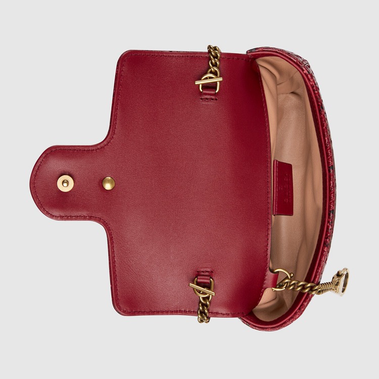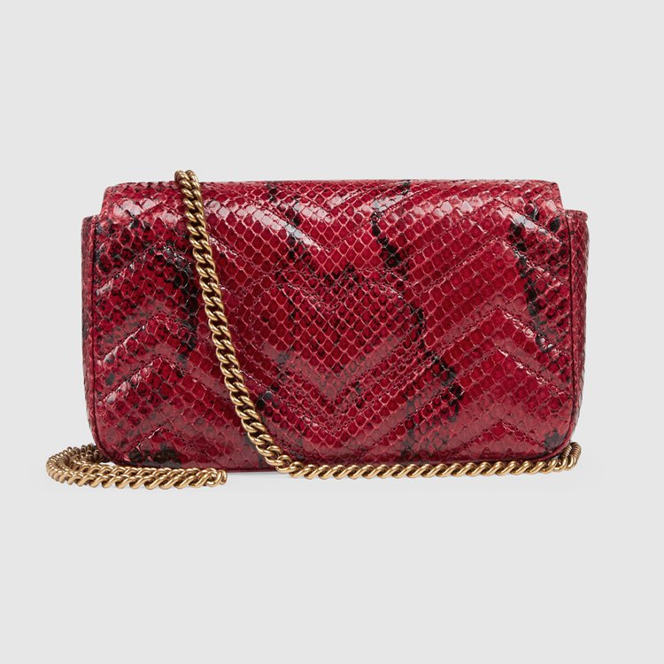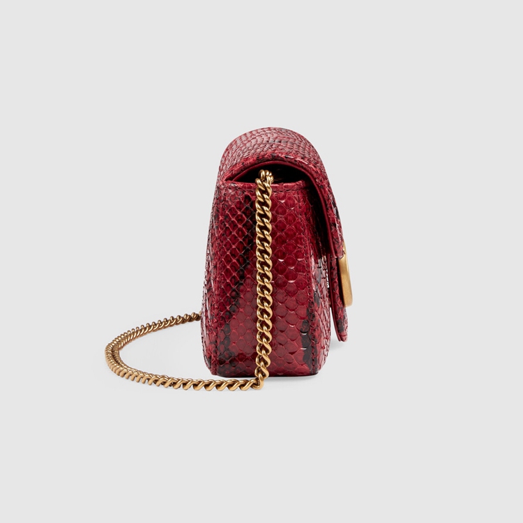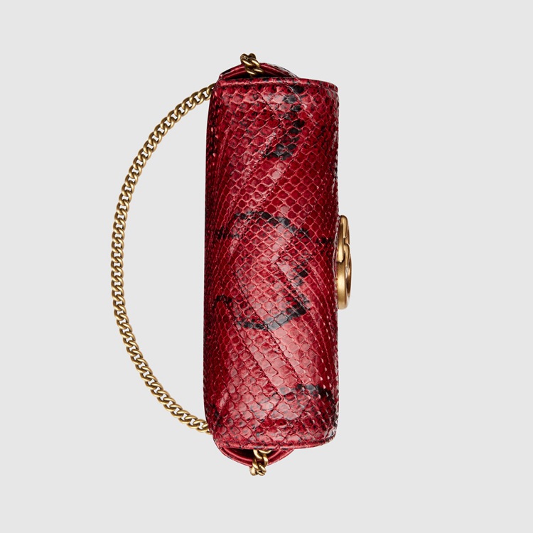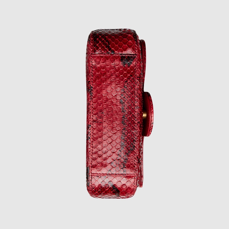 Style 476433 LU3MT 6638 A message about leaving fashion’s old rules behind, Epilogue conveys The idea that pieces should be timeless–not just in fashion For One season. The collection highlights Alessandro Michele’s most Emblematic styles and motifs from The past 5 years, like The GG Marmont. The recognizable style is presented in python in a vibrant red shade. The super mini shoulder bag is completed by The recognizable Double G hardware.
