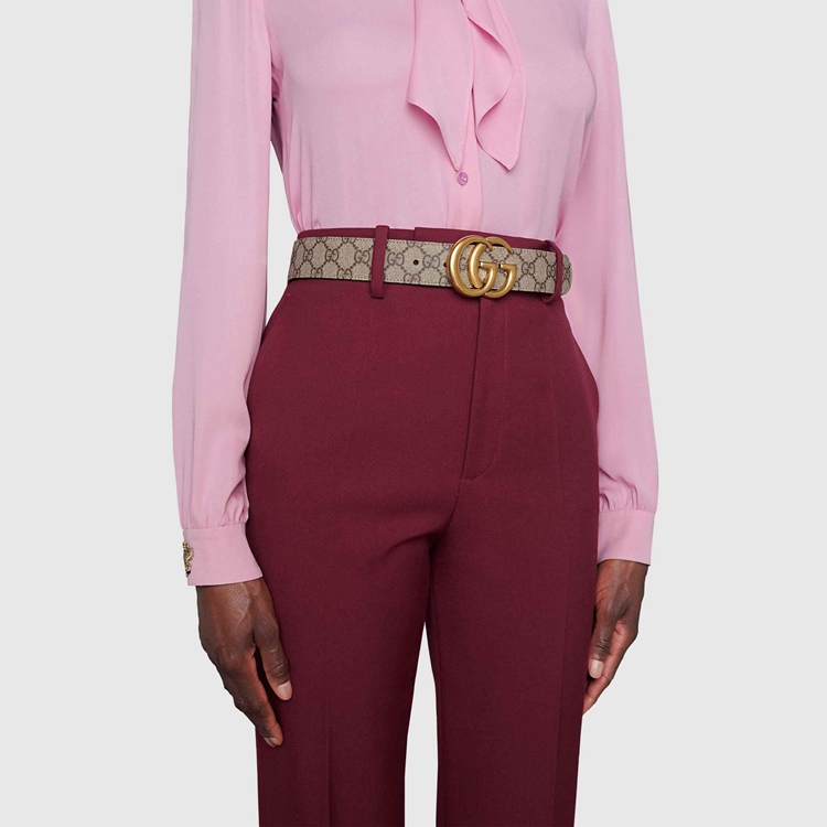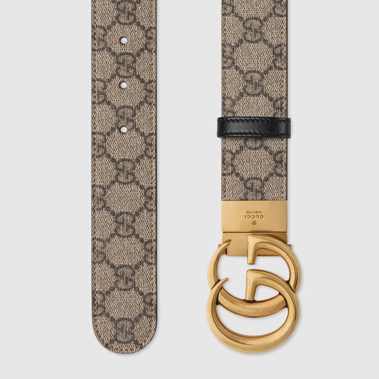 Style 659416 92TIC 9769Evolving season after season, The GG Marmont’s recognizable design blends The ‘70s GG hardware With contemporary styles. This GG Supreme canvas belt reverses to black leather offering an alternative look.