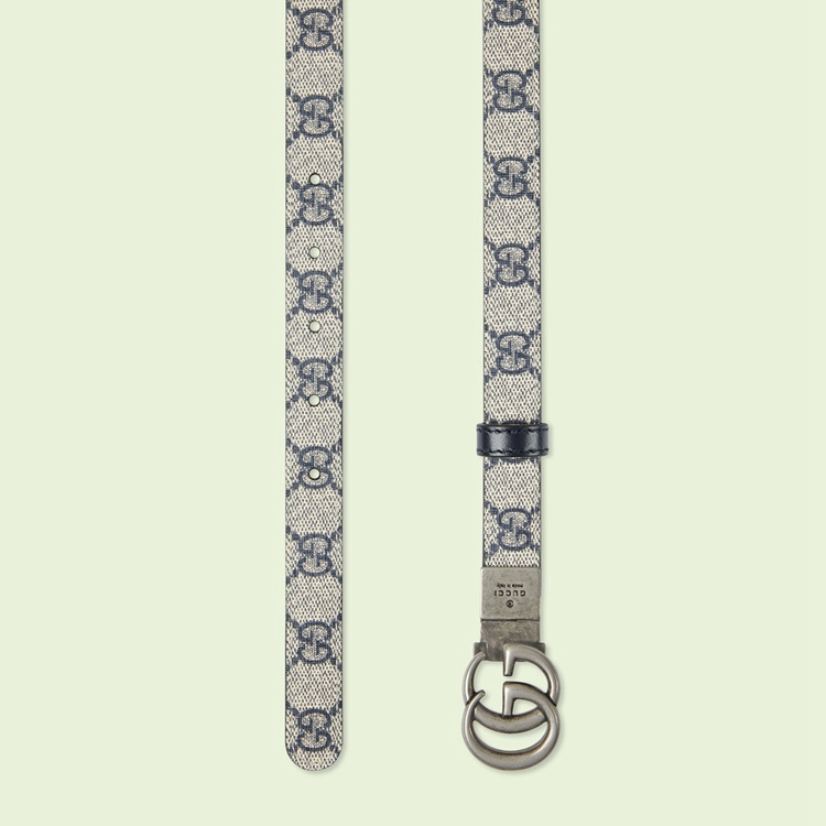 Style 659418 92TIN 4075Mirroring The material’s historic origins, GG Supreme is introduced in a timeless mix of blue and beige For Gucci Love Parade. With a low environmental impact, The canvas has come to The front of each collection decade after decade to become a hallmark of The House. Here, The Classic palette defines This thin belt.