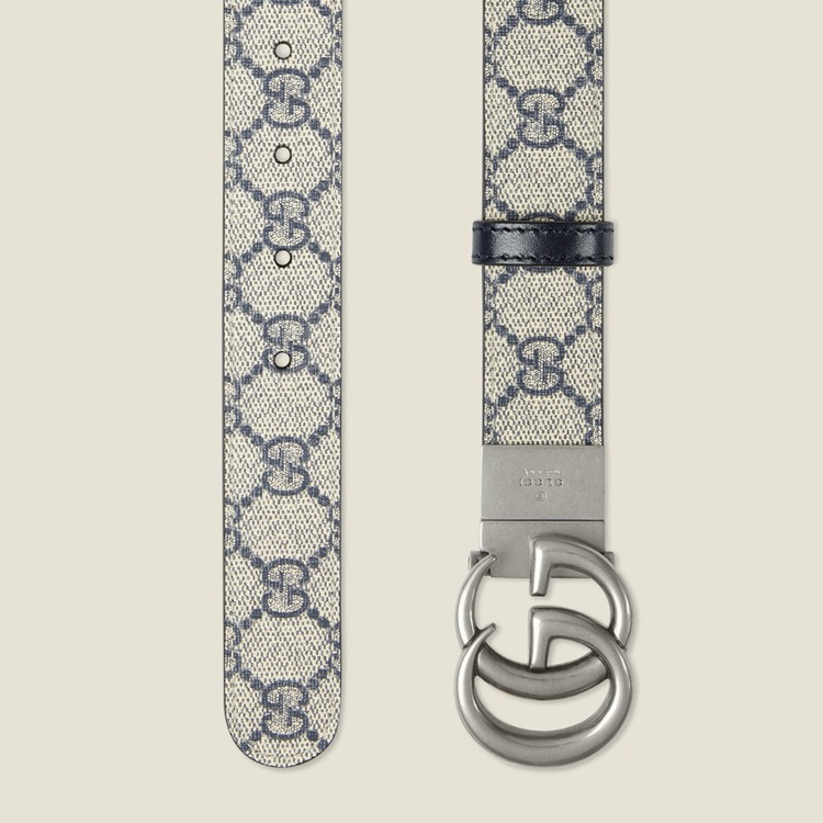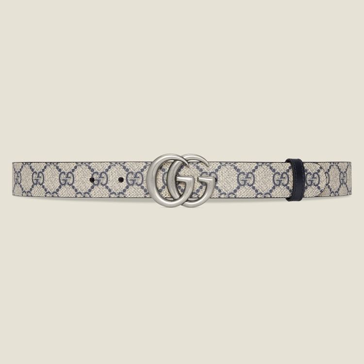 Style 643847 92TIN 4075Mirroring The material’s historic origins, GG Supreme is introduced in a timeless mix of blue and beige For Gucci Love Parade. With a low environmental impact, The canvas has come to The front of each collection decade after decade to become a hallmark of The House. Here, The Classic palette defines This GG Marmont belt.
