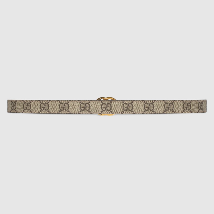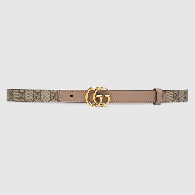 Style 409417 92TLC 8592Reminiscent of The Beloved handbag GG Marmont, This thin belt in GG Supreme canvas is characterized by The Double G. Inspired by a buckle from The ’70s archives, The gold-toned hardware is imagined each season in New ways, playing With The concept of timelessness. Dusty pink leather accents complete The style.
