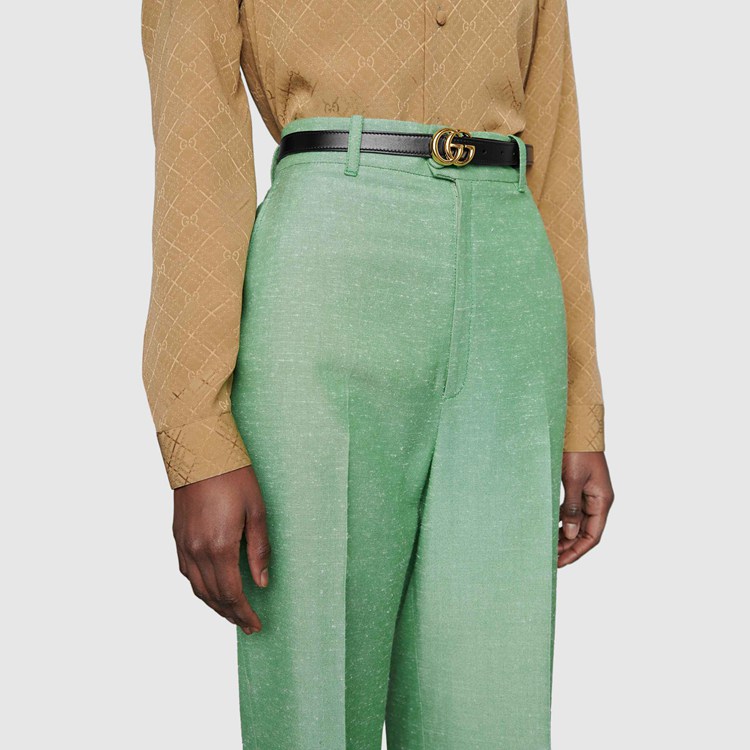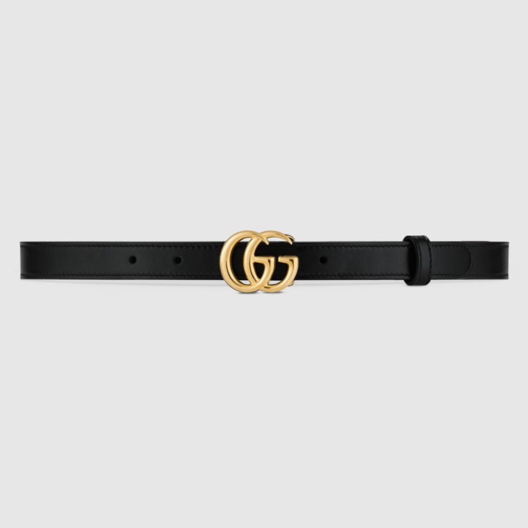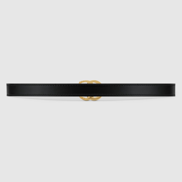 Style 409417 0YA0O 1000 The Emblematic Double G is reintroduced For Spring Summer 2020 in a luminous gold-tone, set on a women’s thin black leather belt.