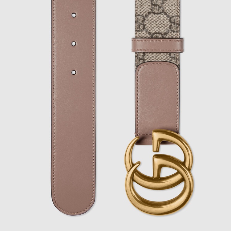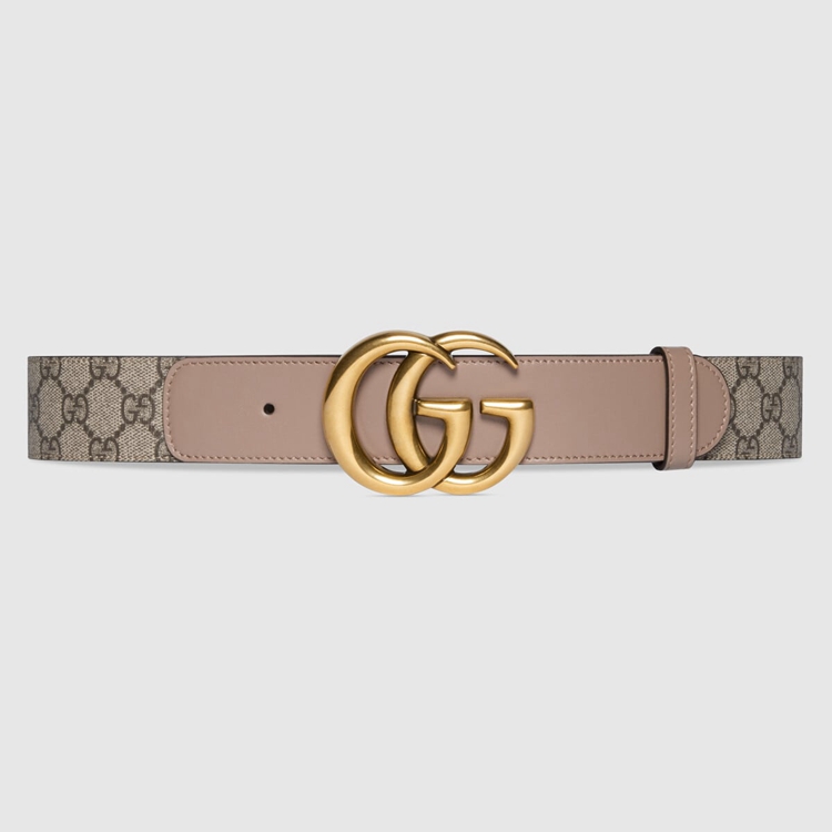 Style 400593 92TLC 8592Colors tell a story throughout Gucci Love Parade. One of The House’s most Emblematic materials, The GG Supreme is Inspired by an archival design from The ’30s. Presented in The traditional beige and ebony, The canvas is representative of timeless pieces and everlasting design. Here, The belt is complete With a dusty pink leather trim and Double G hardware.