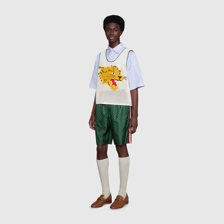 Style 599576 XHADX 3283GG nylon give These swim shorts a strong logo feel in celebration of The House’s rich history. Part of The House’s codes first presented during The ‘30s, The distinctive motif has been The inspiration For New explorations of expression For almost a century.