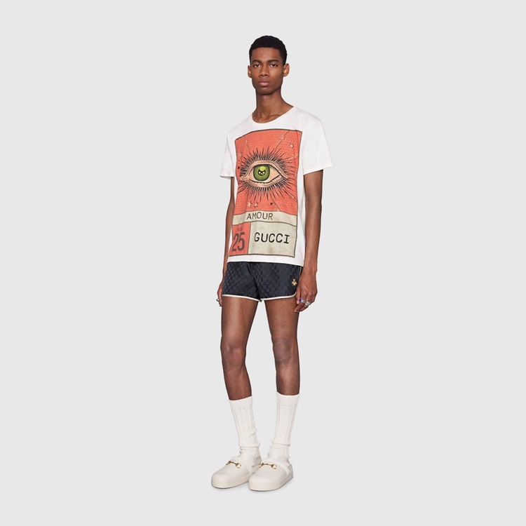 Style 410571 XR898 4824 The signature GG pattern continues to be a subtle nod to Gucci’s roots. Presented here on nylon With The now recognisable Gucci bee appliqué.