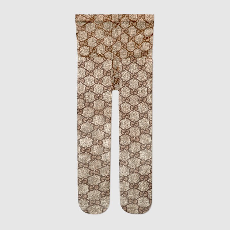 Style 523697 3GA35 9764 The GG is a nearly 100 year old symbol that has been brought back into The forefront of Gucci’s Designs in unexpected ways. For Pre-Fall 2018, The motif is presented on tulle tights.