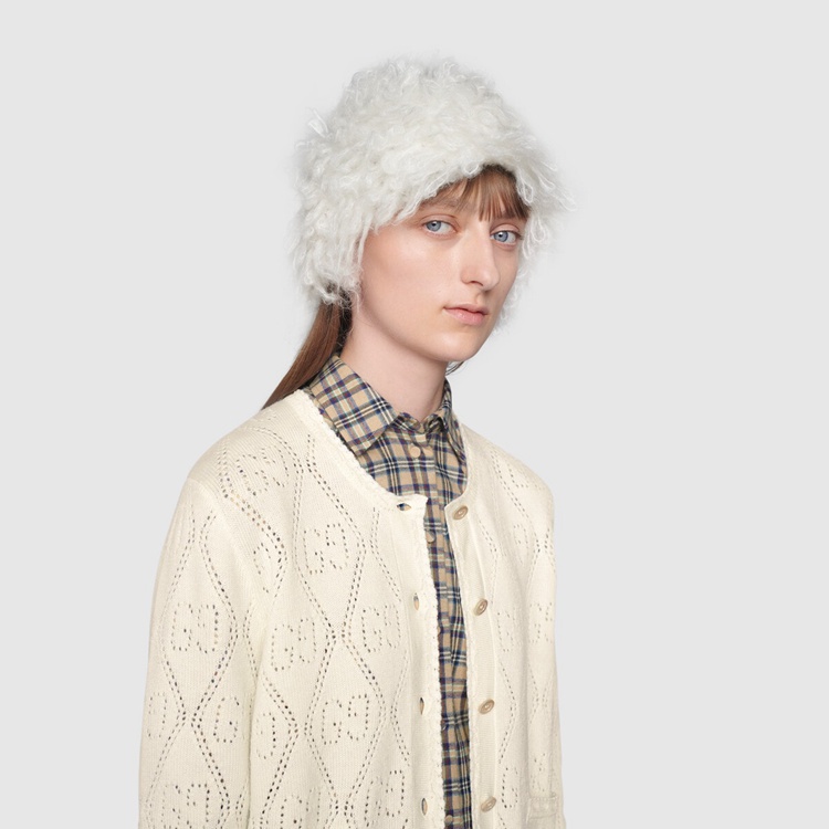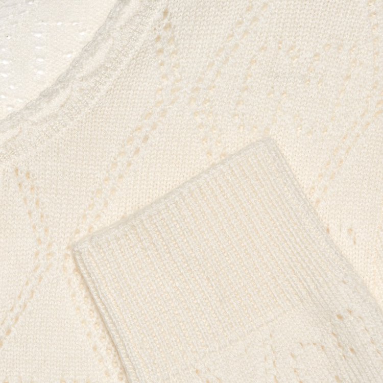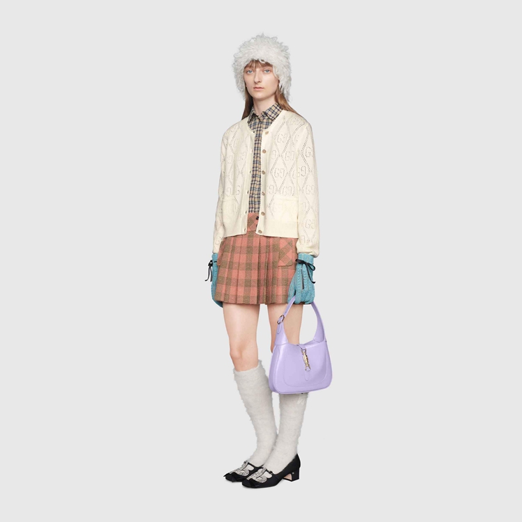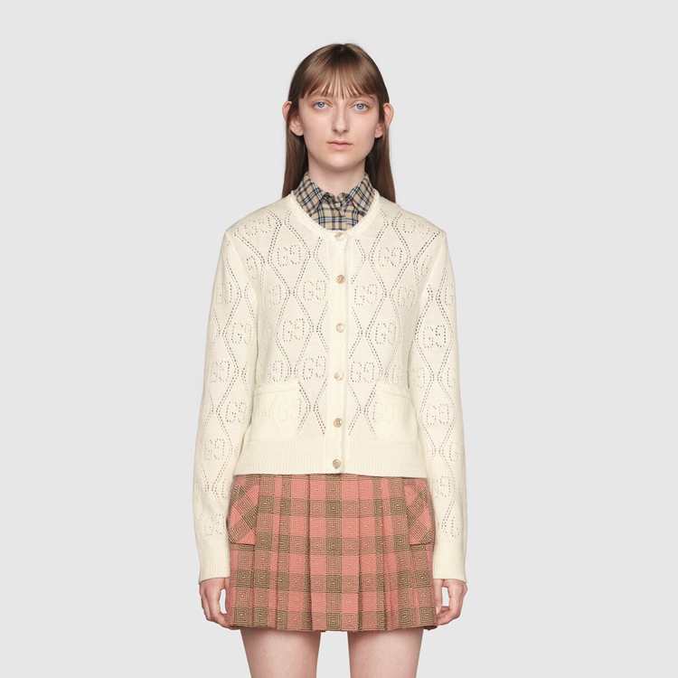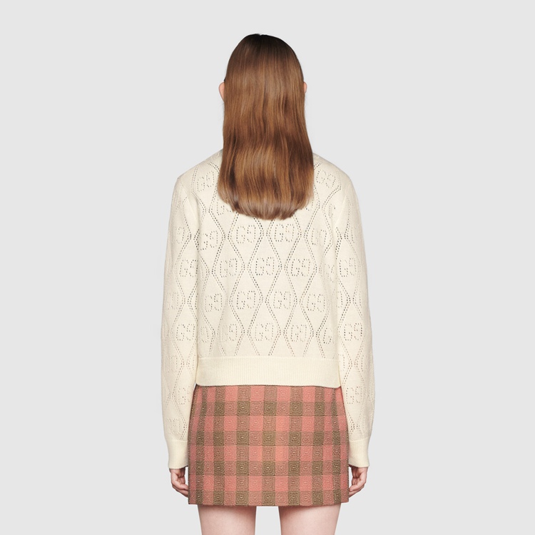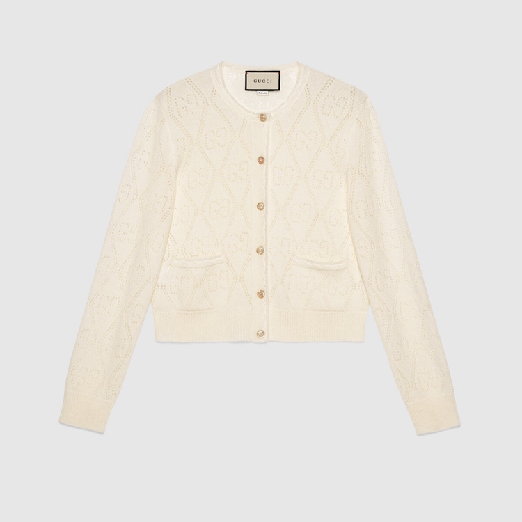 Style 642117 XKBL7 9200 Inspired by The original Gucci rhombi motif from The ’30s, The House’s monogram is revisited and reimagined in New variations each season. In This crop cardigan, The GG pattern appears as a perforated design, achieved using a needle punch technique.