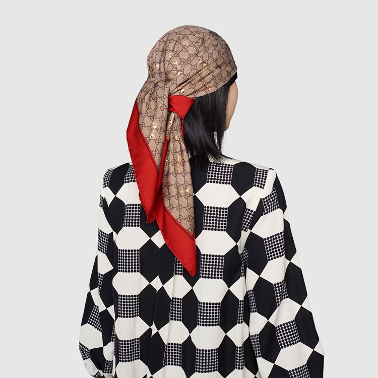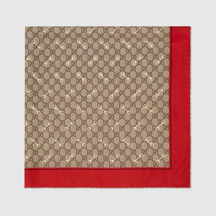 Style 662576 3G001 6475Symbolic House codes continue to be reimagined throughout The latest collection. Here The Classic GG design is paired With a yellow Horsebit print, defining This elegant carré With a red border. The GG motif nods to The House’s Founder Guccio Gucci, while The Horsebit references The brand’s equestrian roots.