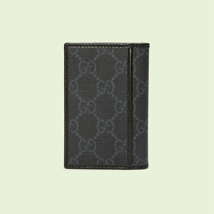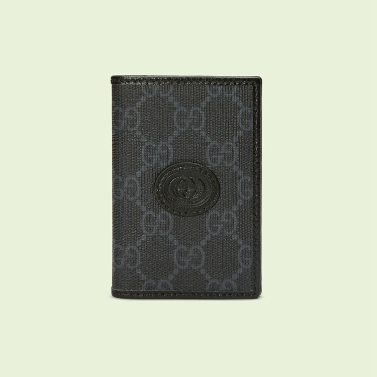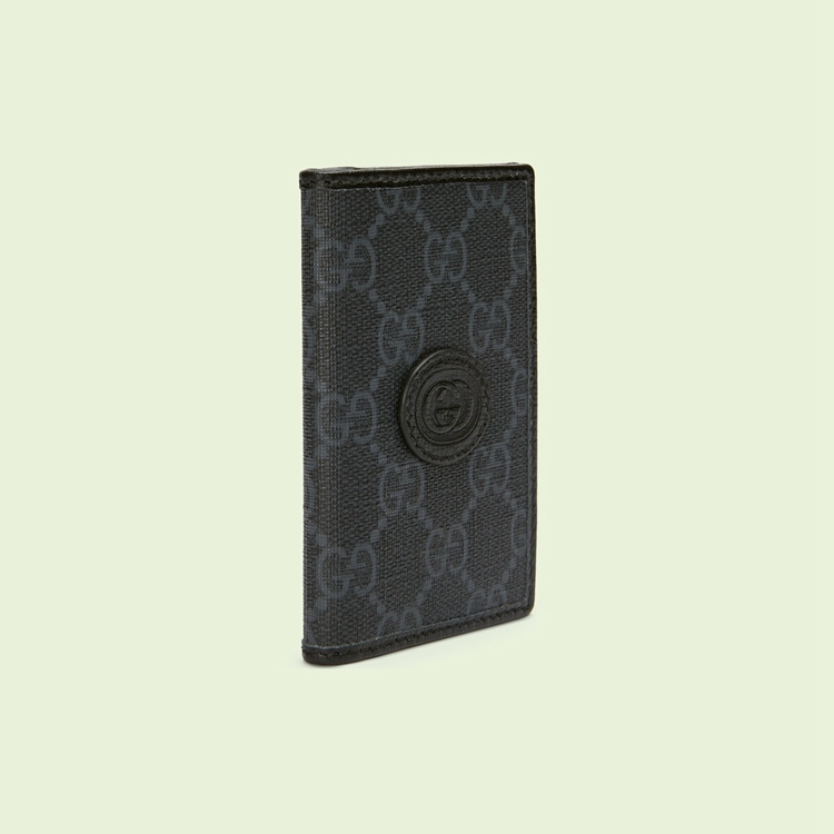 Style 699267 92TCN 1000Here two archival details come together atop This card case imbuing The design With a vintage feel. Crafted from black GG Supreme canvas, The accessory is completed by an oval Interlocking G tag. Different interpretations of The House logo continue to enrich collections season after season.