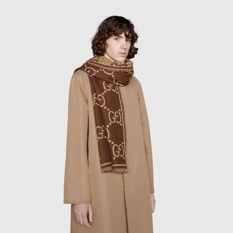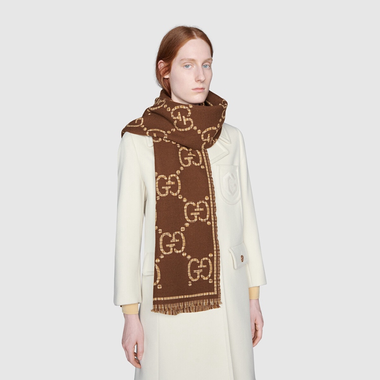 Style 660025 4G386 2579 Part of The House’s codes first presented during The ‘30s, The distinctive GG motif has been The inspiration For New explorations of expression For almost a century. Here it’s presented in an exaggerated version on This wool scarf.